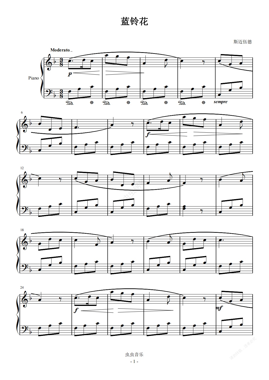 钢琴谱:《蓝铃花》中国音乐学院钢琴三级B组练习曲