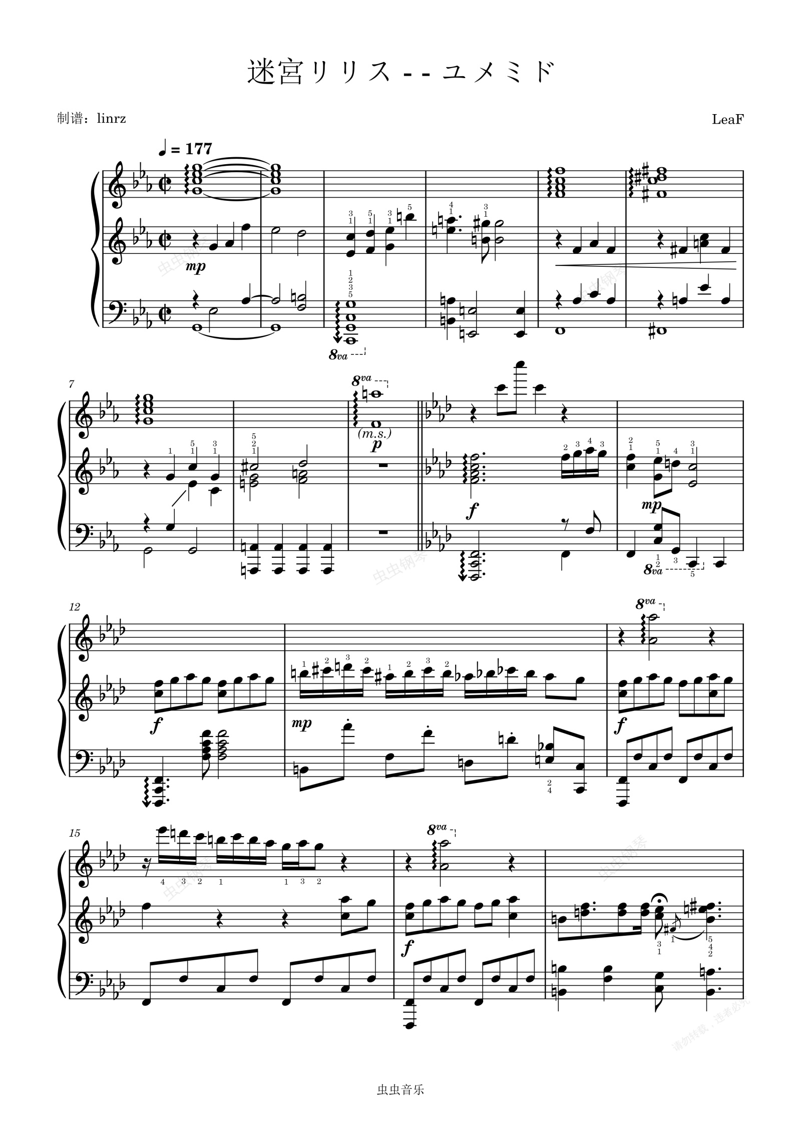 《迷宮リリス》是日本音乐人LeaF(外号“草先生”)与ユメミド(其实是LeaF小号)的合作曲。我非常喜欢这首曲子的和声,然后又发现似乎全网都没有这首曲子的扒谱,于是我就亲自上马了(个人认为还原度不错)。