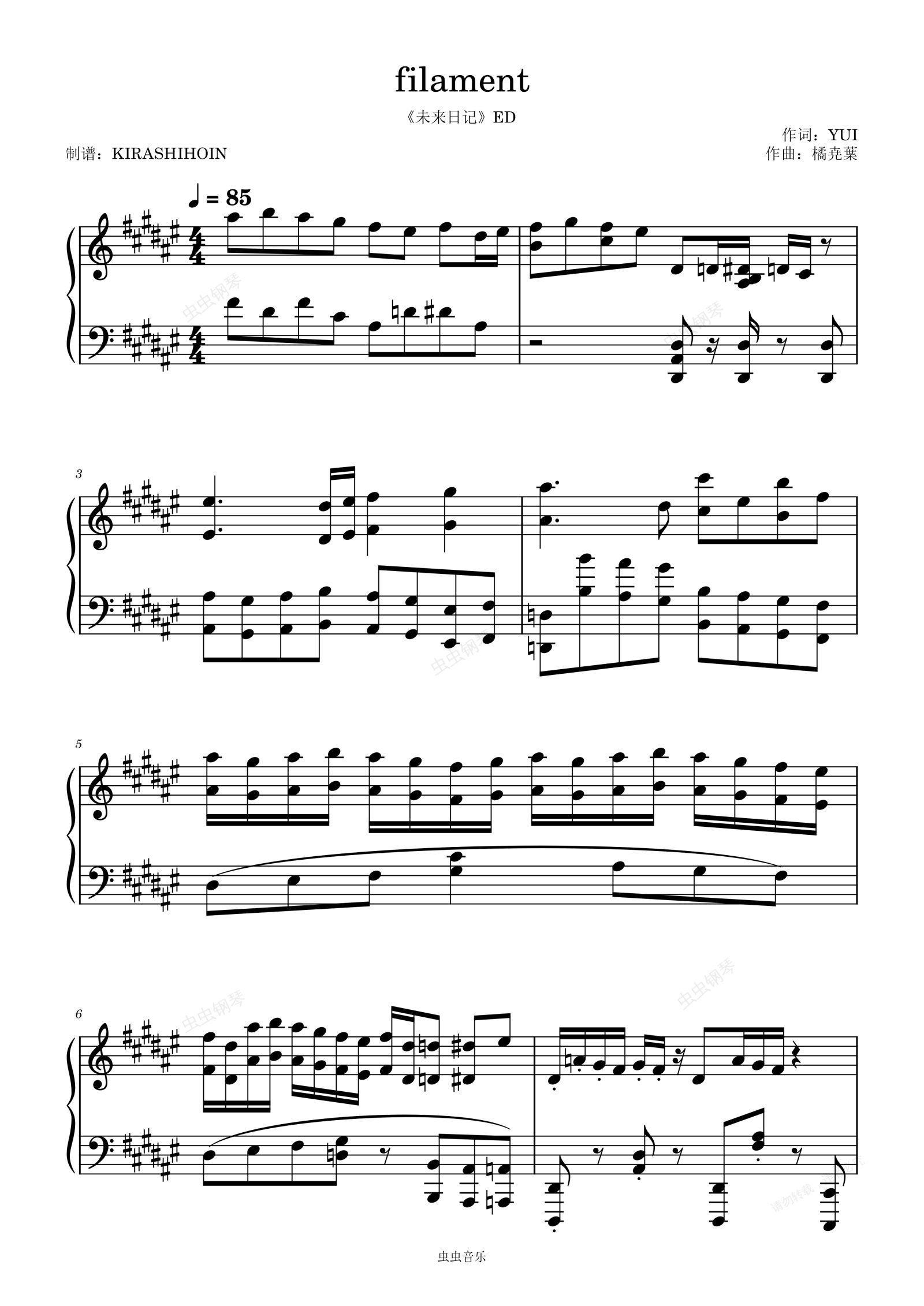 钢琴谱:filament(《未来日记》ED) - 妖精帝国
