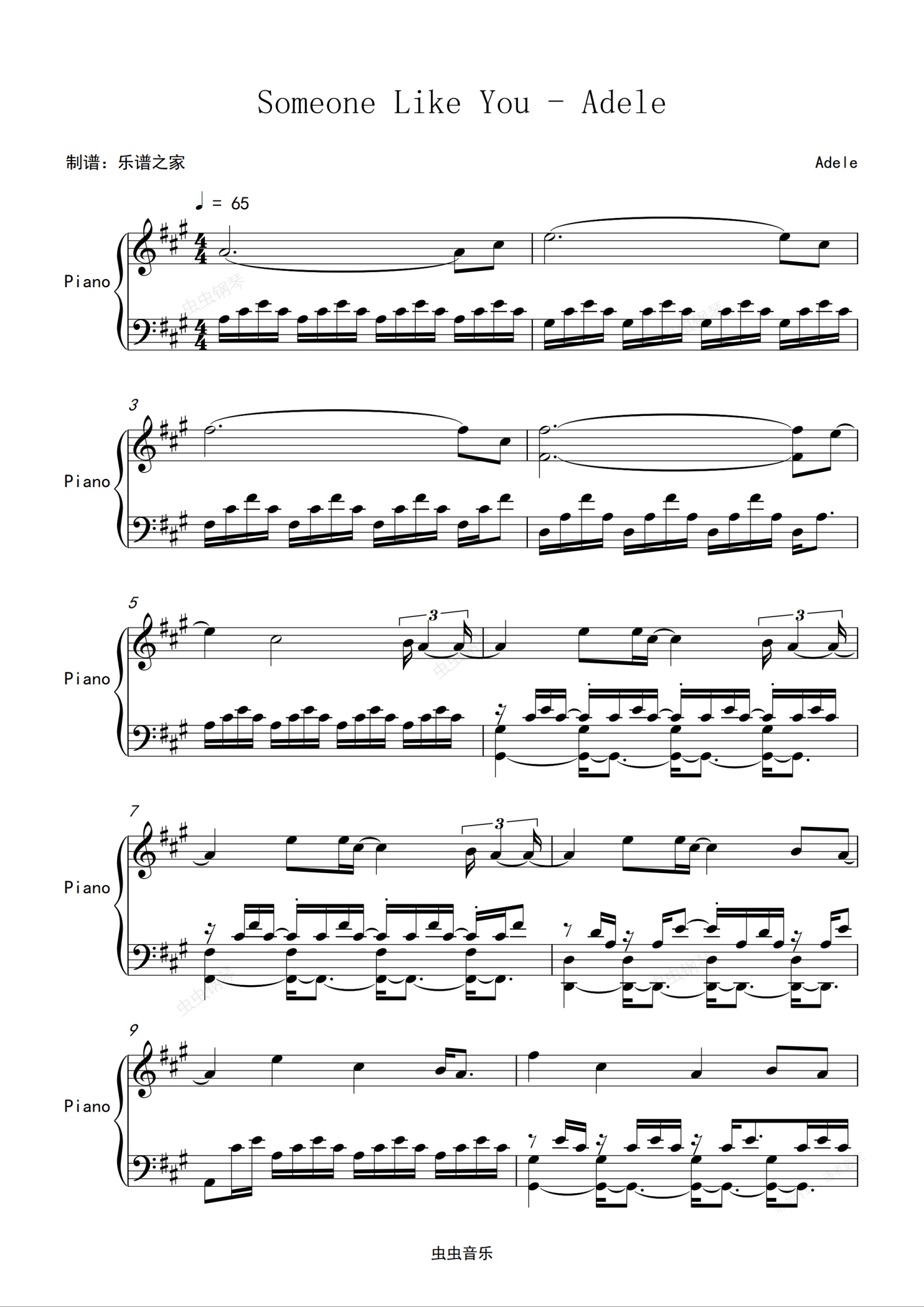 钢琴谱:Adele “Someone Like You”独奏钢琴谱 高清乐谱 送示范音频