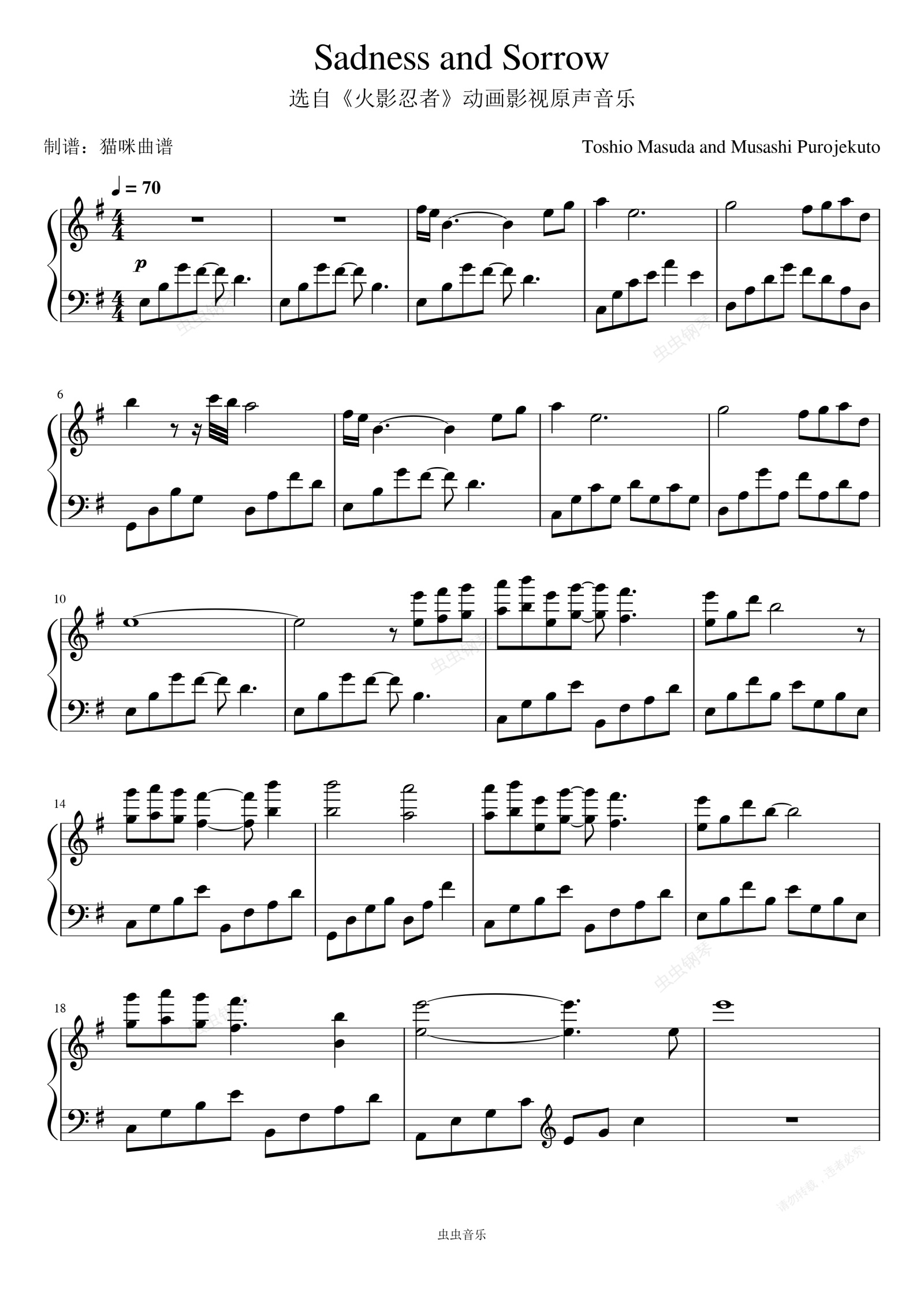 钢琴谱:【Sadness and Sorrow】-《火影忍者》动画影视原声音乐