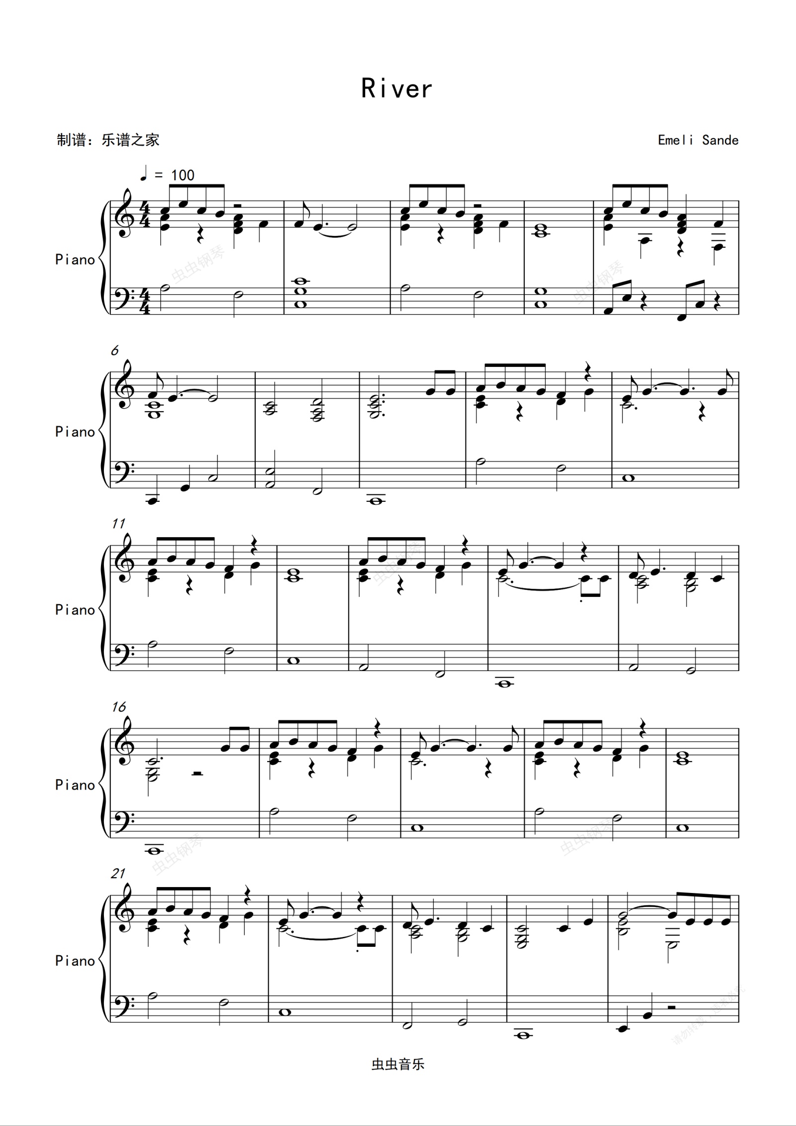 钢琴谱:Emeli Sande艾梅丽-桑德 River 独奏钢琴谱 高清乐谱