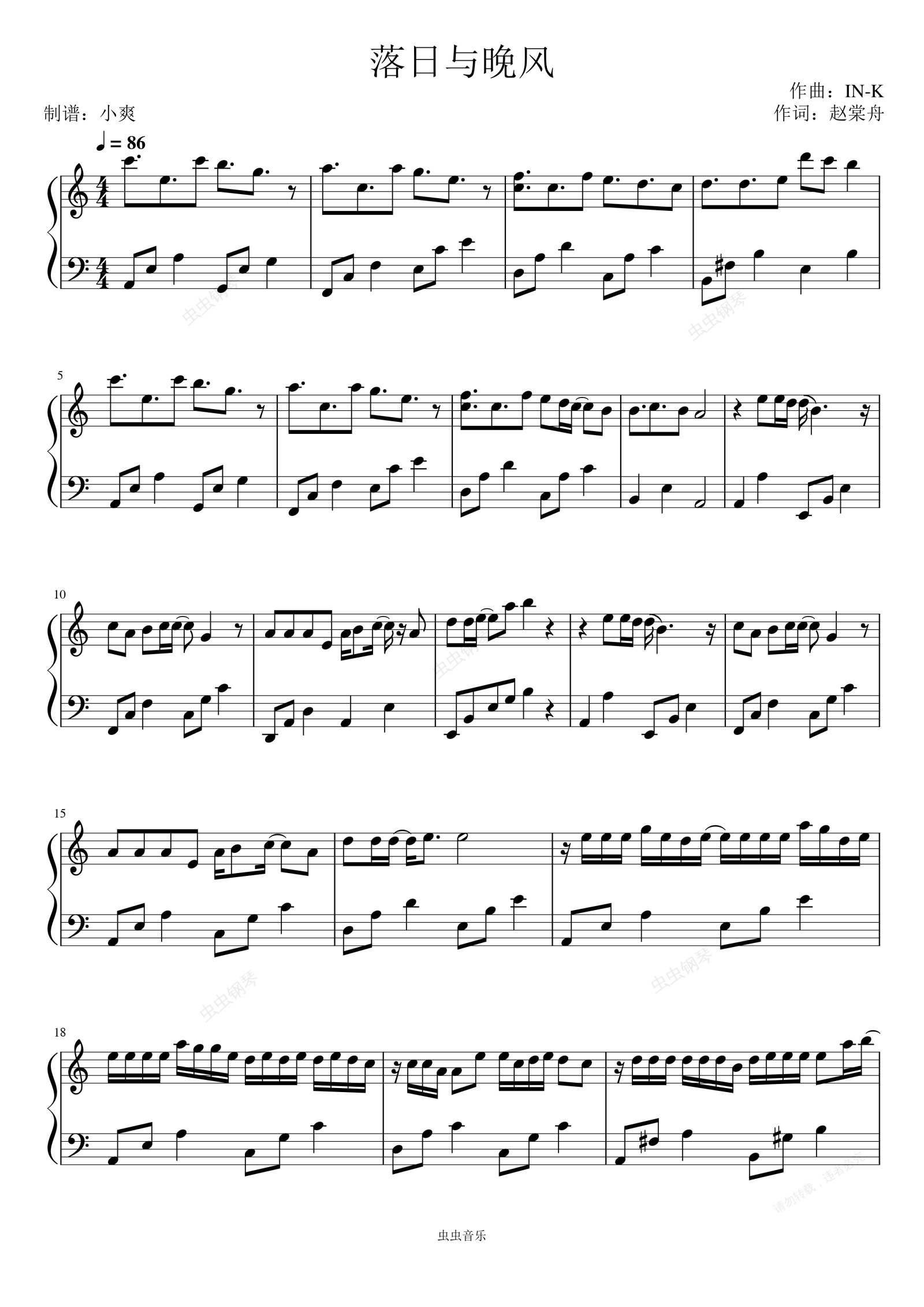 钢琴谱:落日与晚风