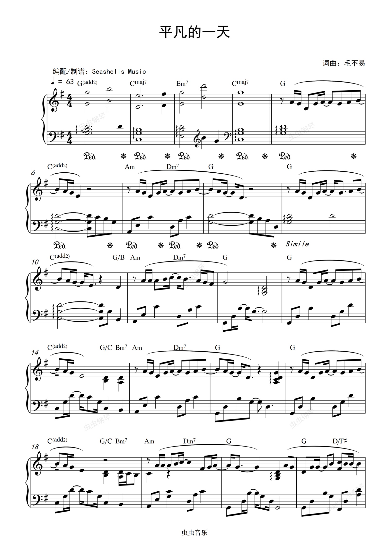钢琴谱:毛不易-《平凡的一天》精编钢琴独奏