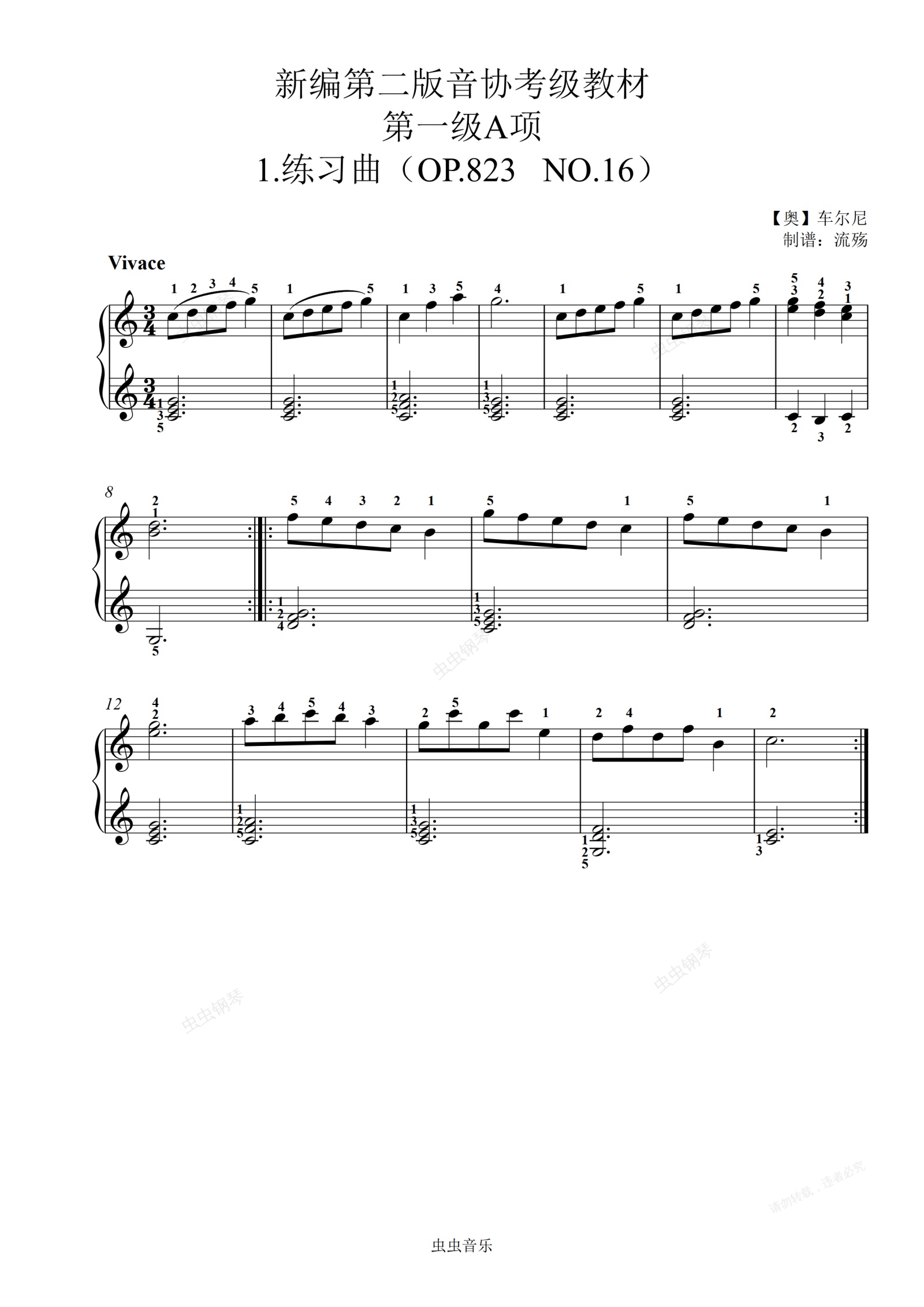 钢琴谱:新编第二版音协考级 一级A项1:练习曲