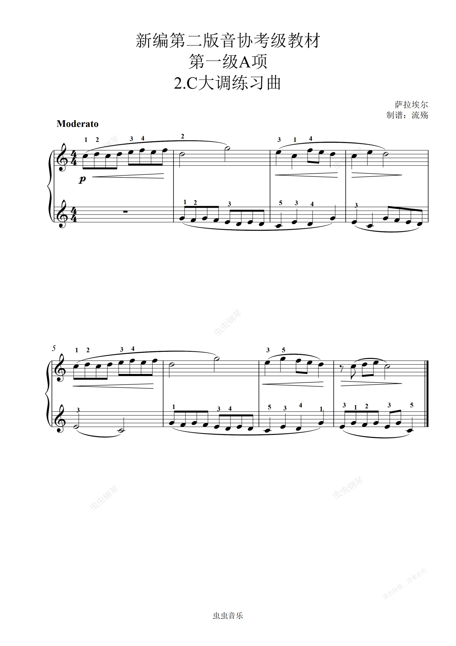 钢琴谱:新编第二版音协考级 一级A项:2.C大调练习曲