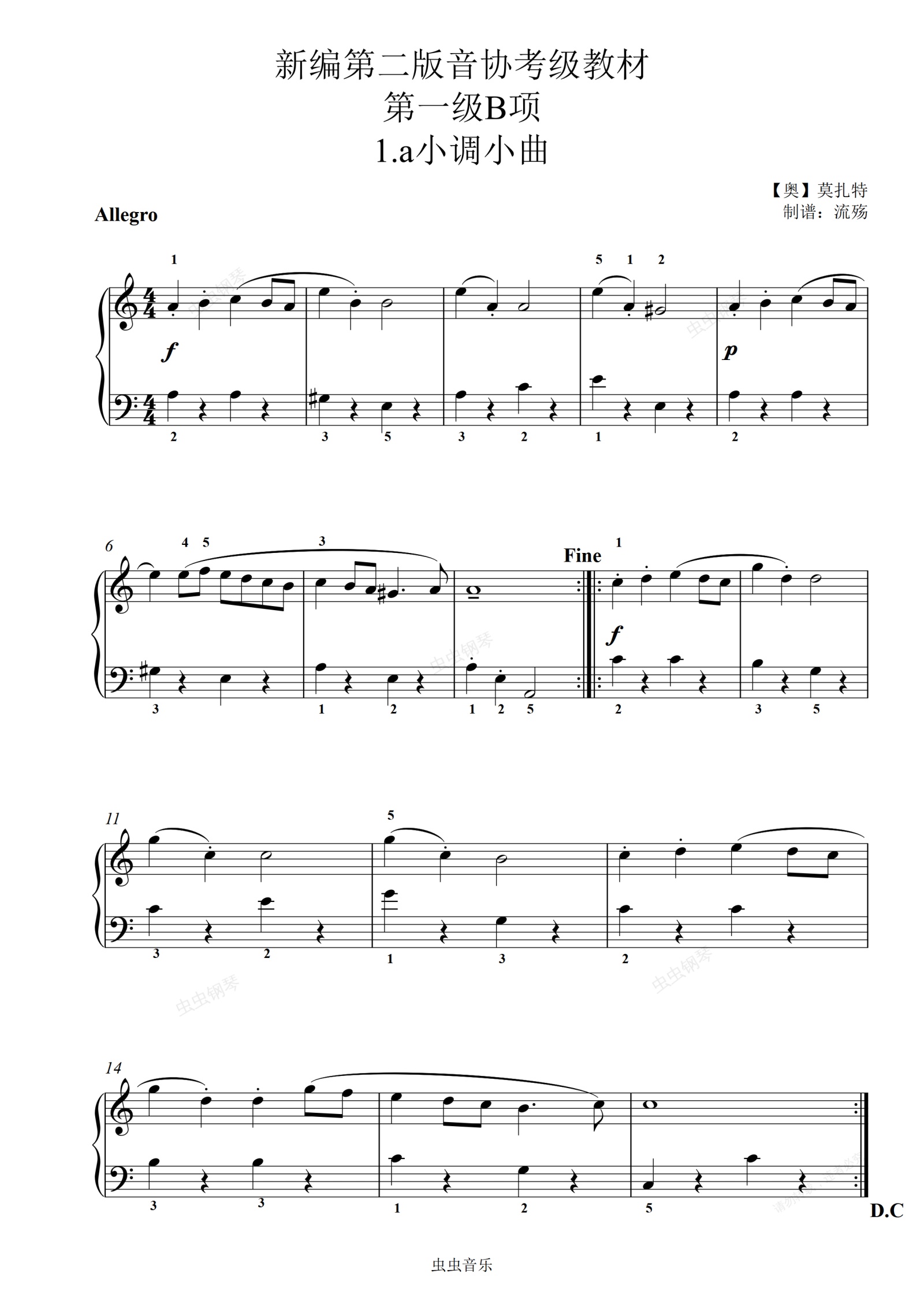 钢琴谱:新编第二版音协考级 一级B项:1.a小调小曲