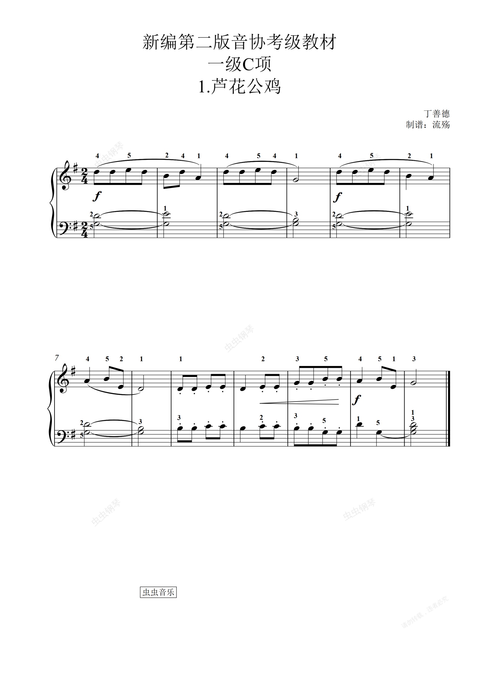 钢琴谱:新编第二版音协考级 一级C项:1.芦花公鸡