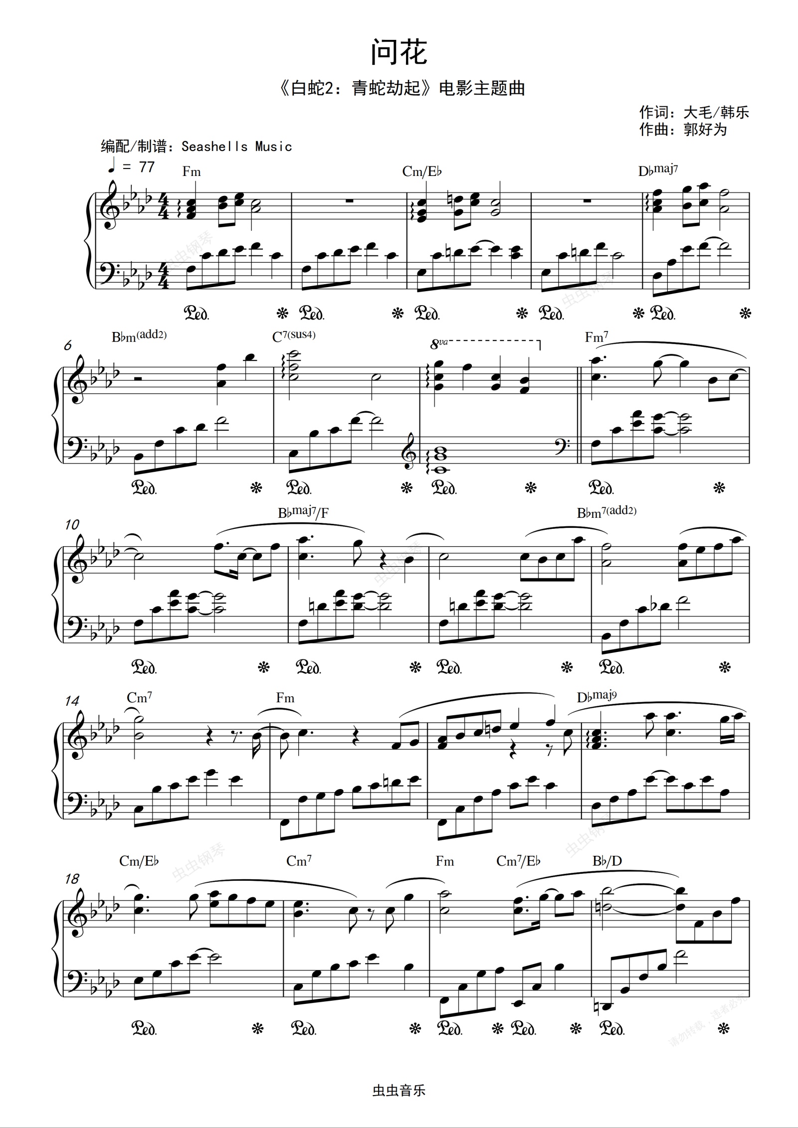 钢琴谱:周深-《问花》精编钢琴独奏 电影青蛇2主题曲
