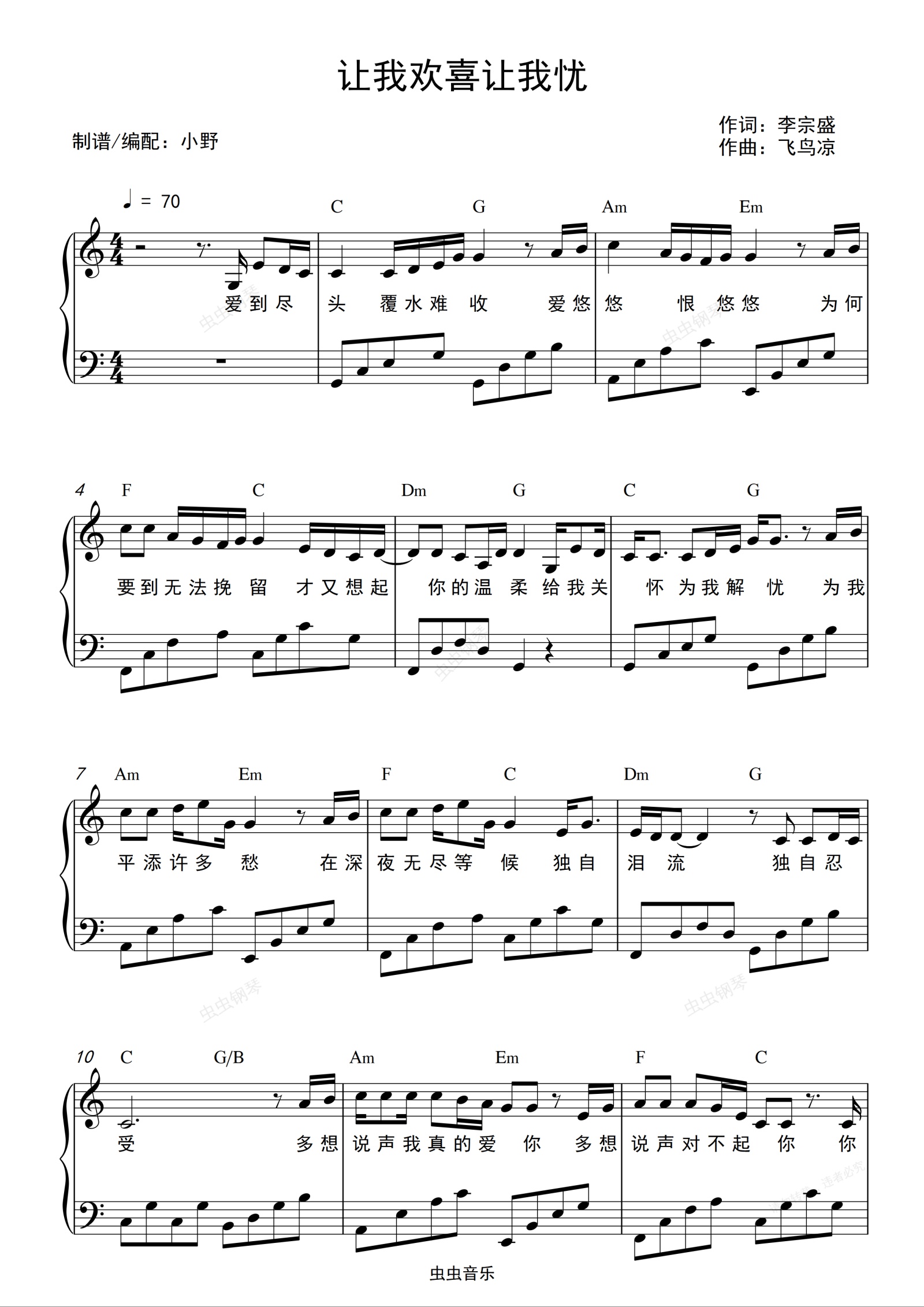 钢琴谱:让我欢喜让我忧