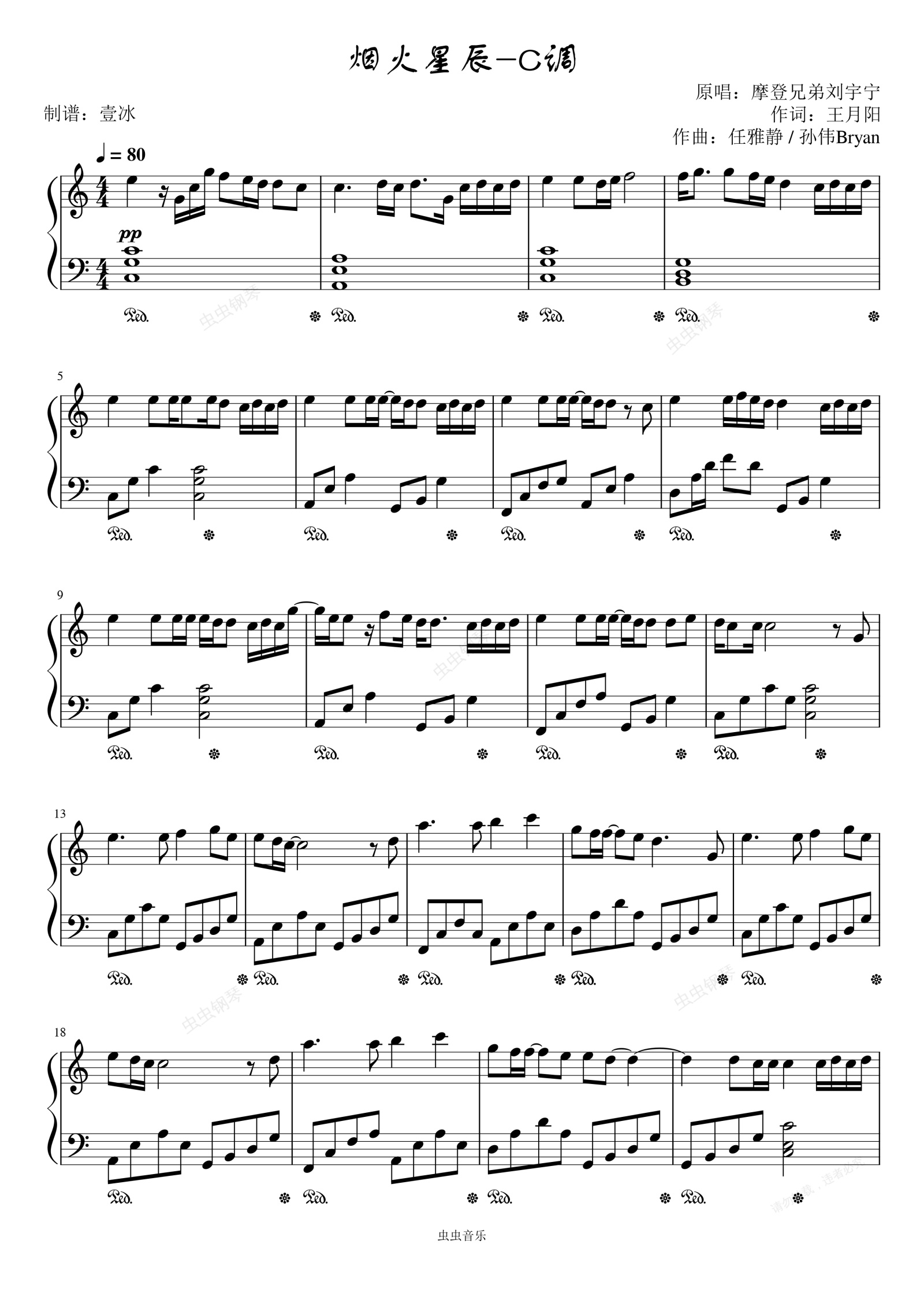 钢琴谱:烟火星辰//《你是我的荣耀》主题曲-C调版