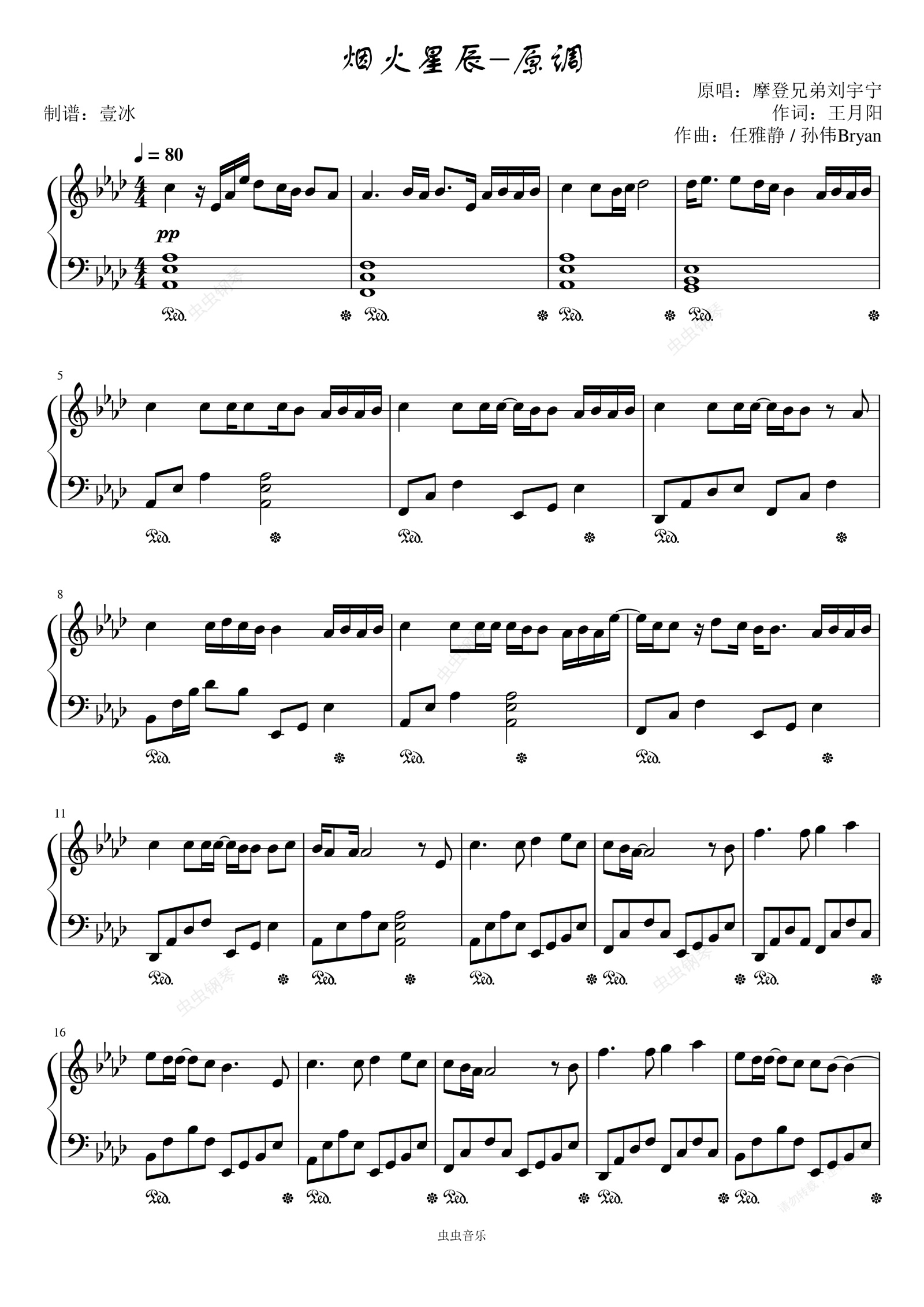钢琴谱:烟火星辰//《你是我的荣耀》主题曲-原调版