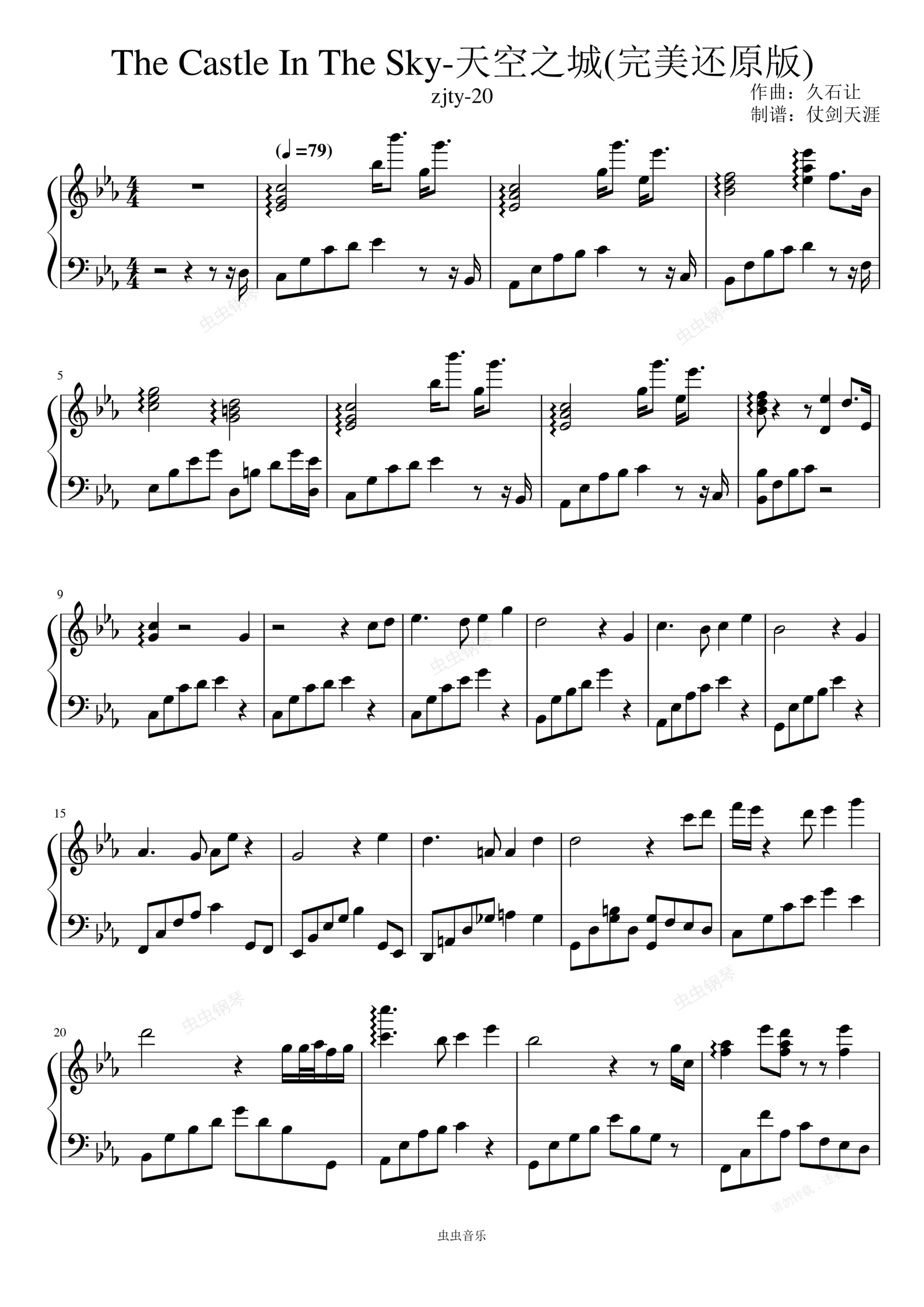 钢琴谱:The Castle In The Sky-天空之城(完美还原版)