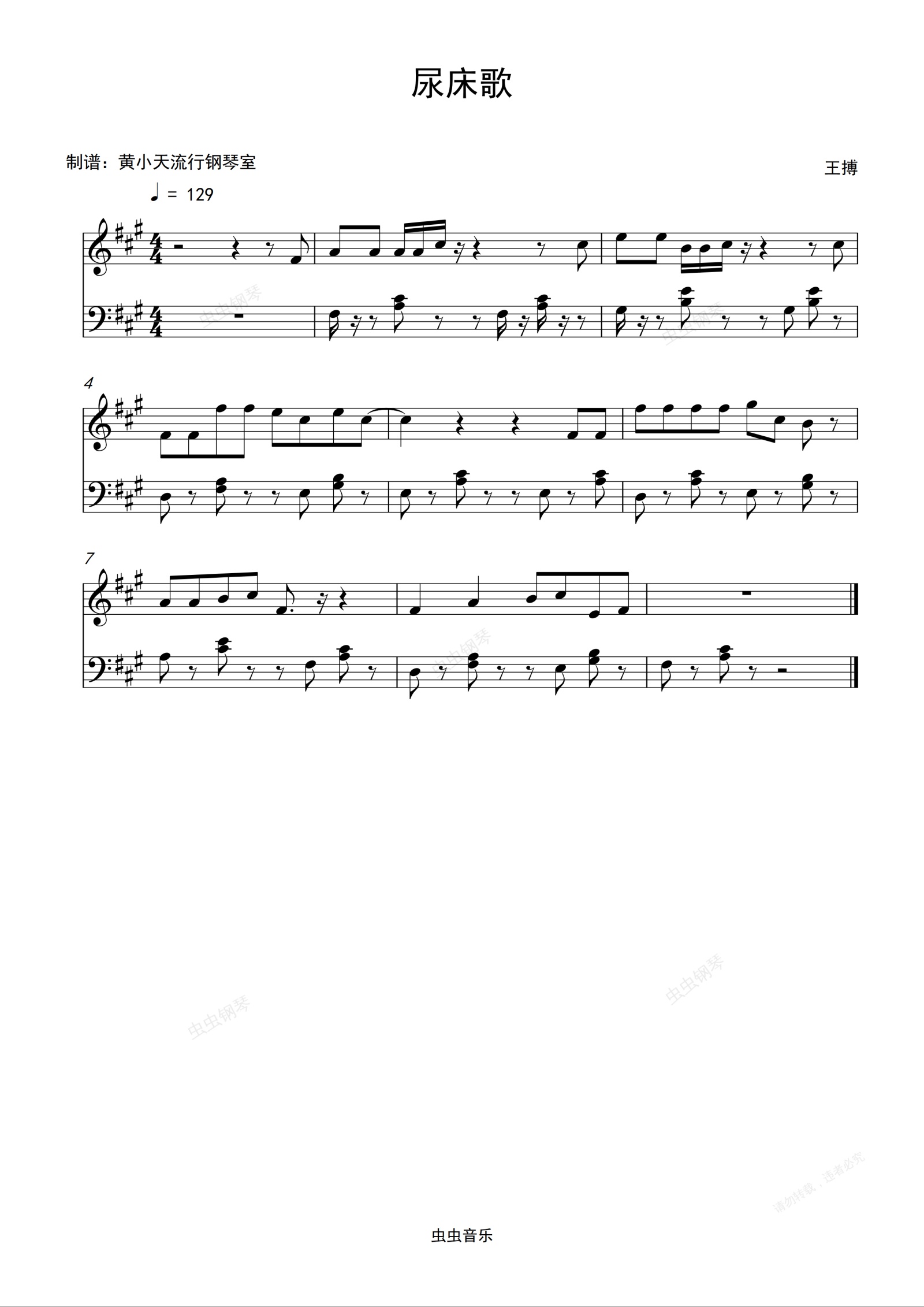 钢琴谱:王博-尿床怎么了?(尿床歌抖音钢琴版本)