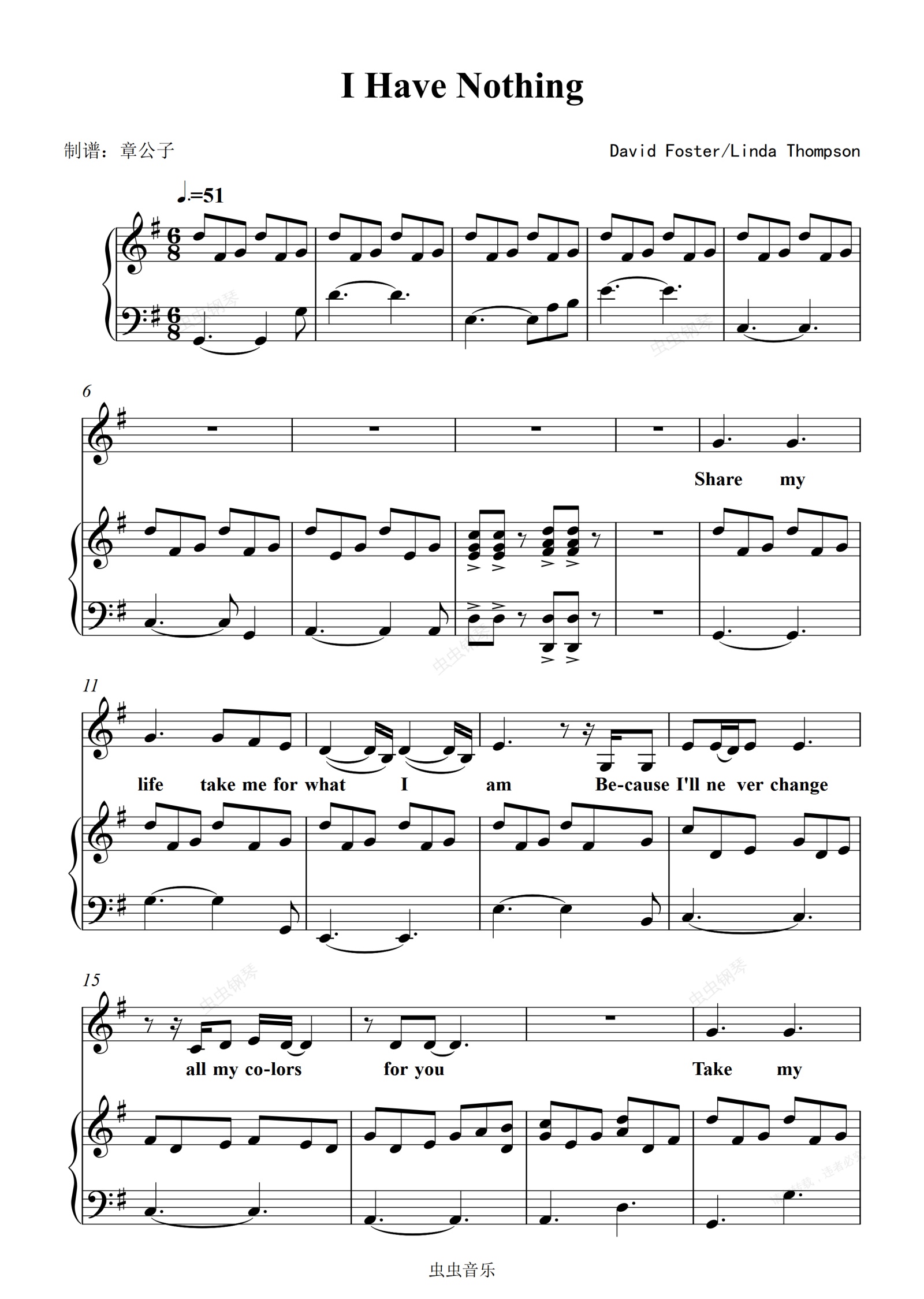 钢琴谱:I Have Nothing - Whitney Houston 钢琴弹唱(伴奏)谱
