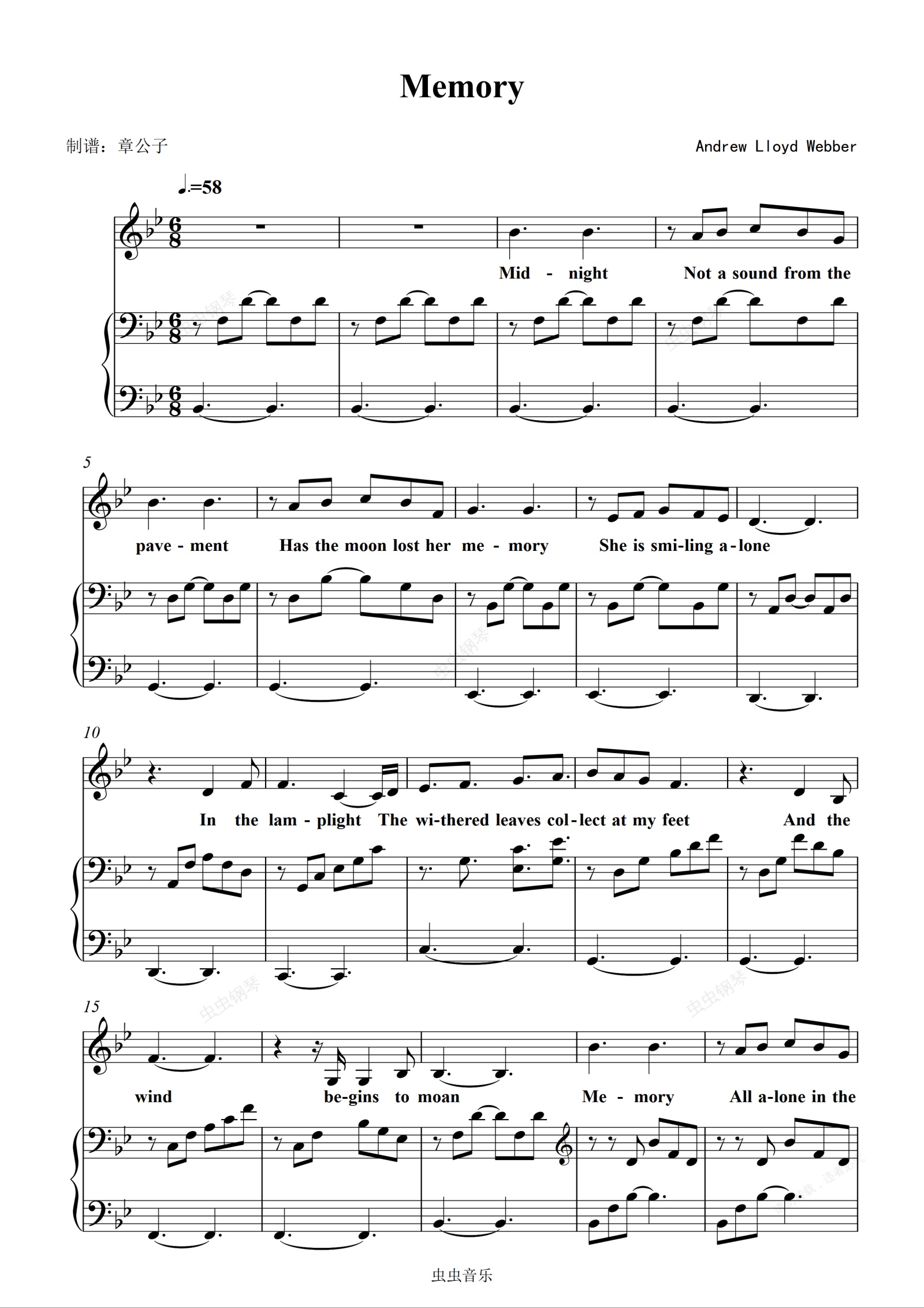 钢琴谱:Memory(音乐剧猫) - Andrew Lloyd Webber 韦伯 弹唱(伴奏)谱