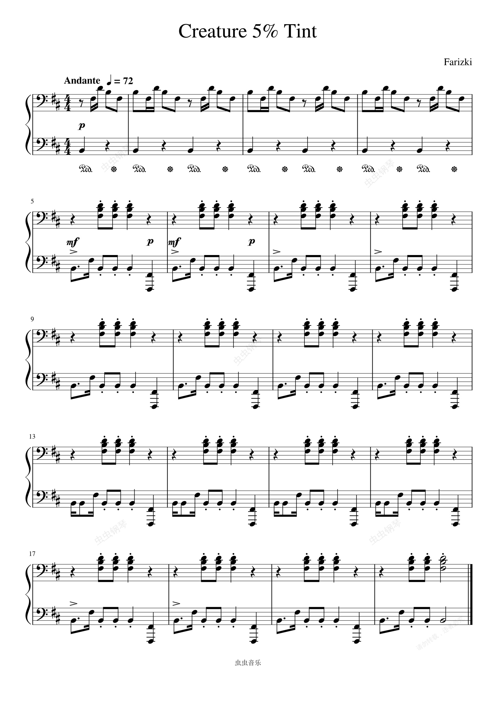 钢琴谱:Creature 5% Tint 钢琴纯音乐