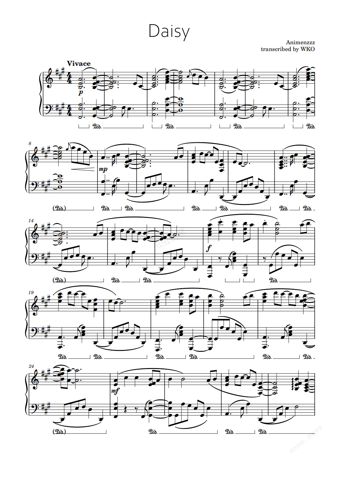 钢琴谱:【Daisy】Animenzzz版