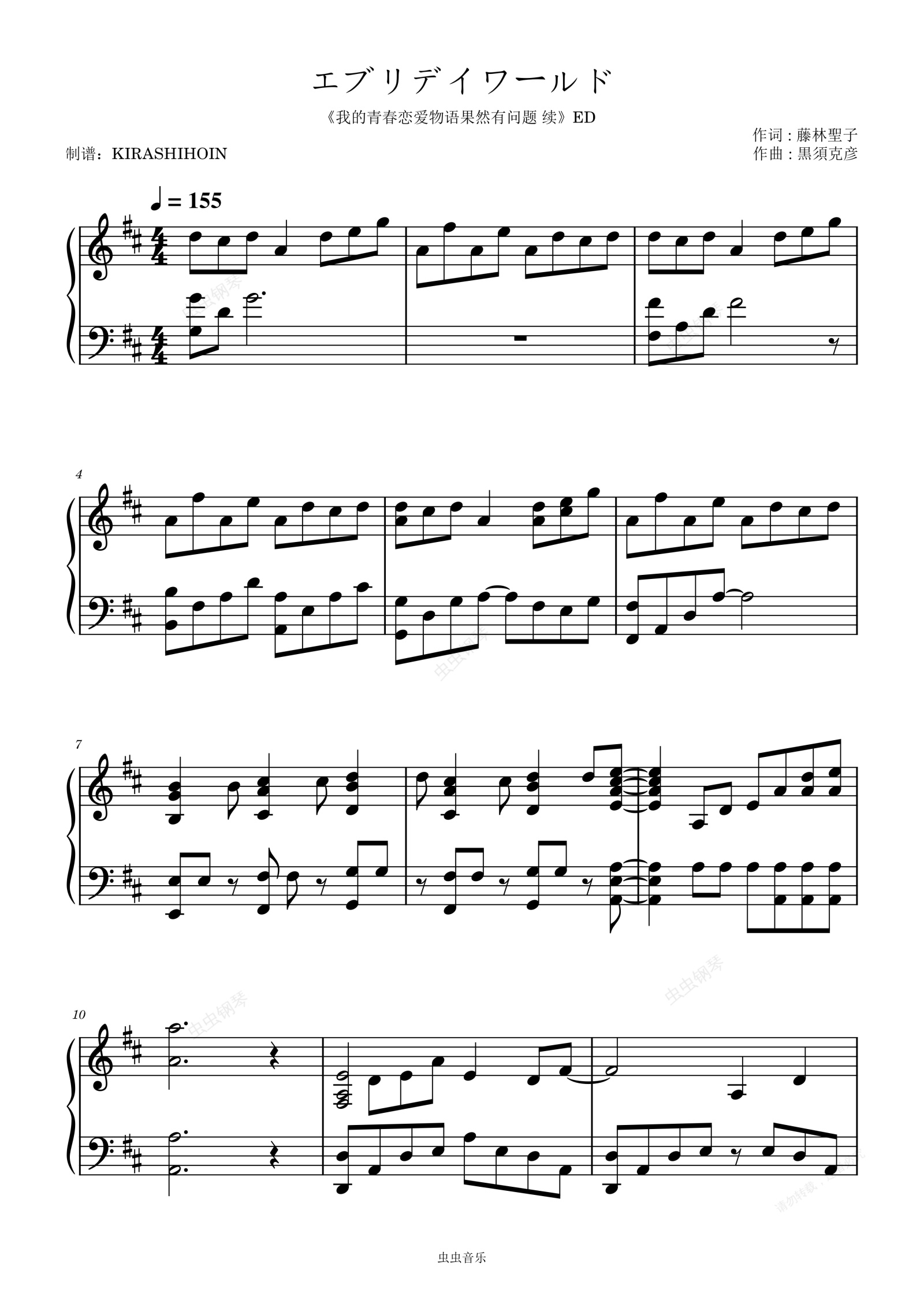 钢琴谱:エブリデイワールド/Everyday World(《我的青春恋爱物语果然有问题 第二季 续》ED)- 早见沙织/东山奈央