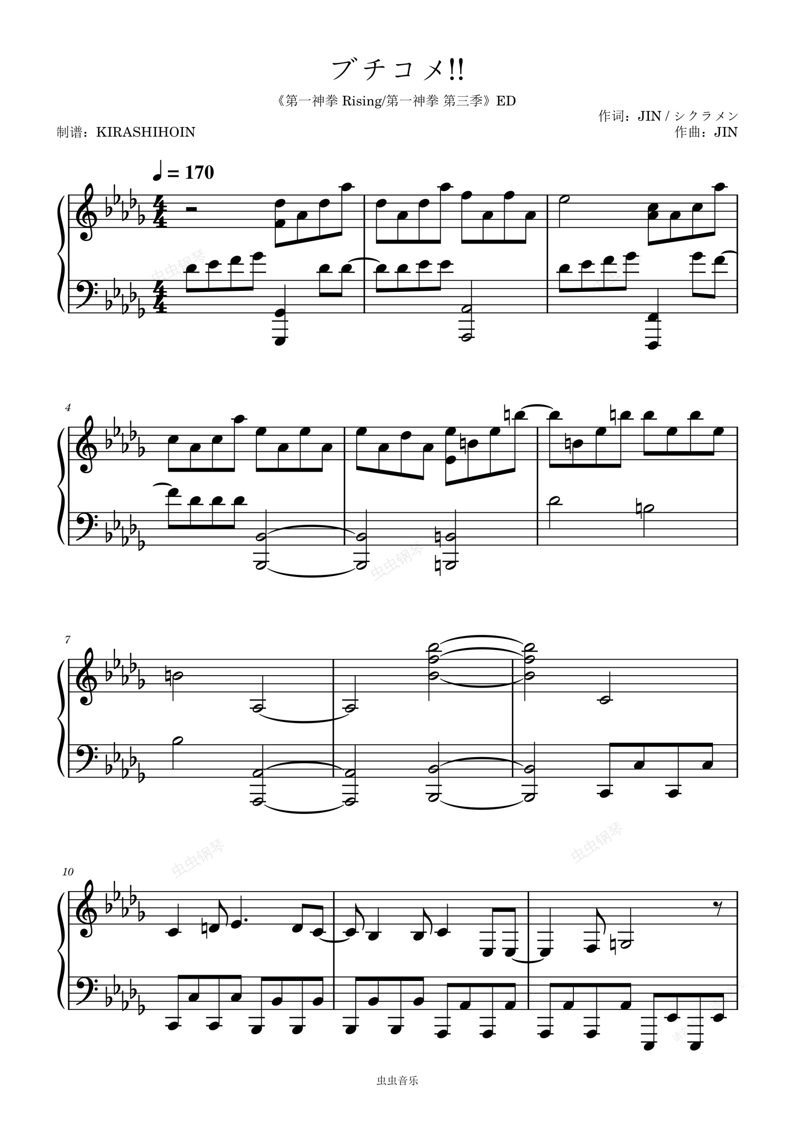 钢琴谱:ブチコメ!!(《第一神拳 Rising/第一神拳 第三季》ED)