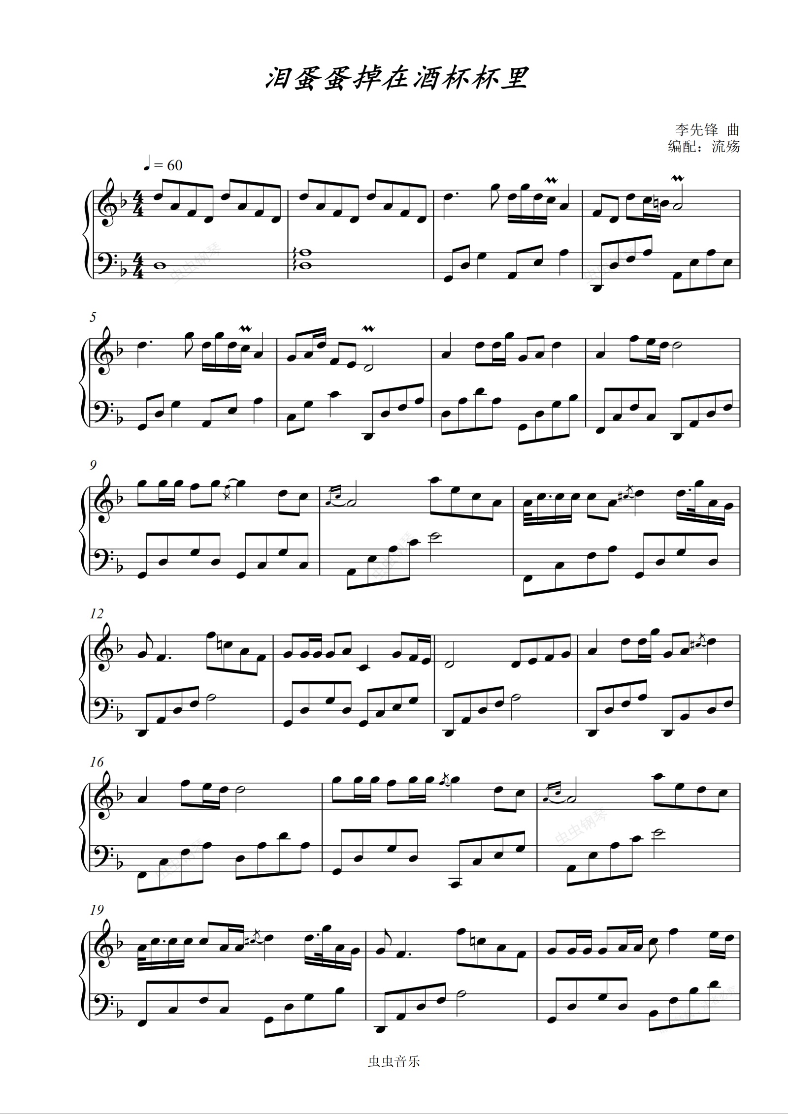 钢琴谱:泪蛋蛋掉在酒杯杯里 完美还原