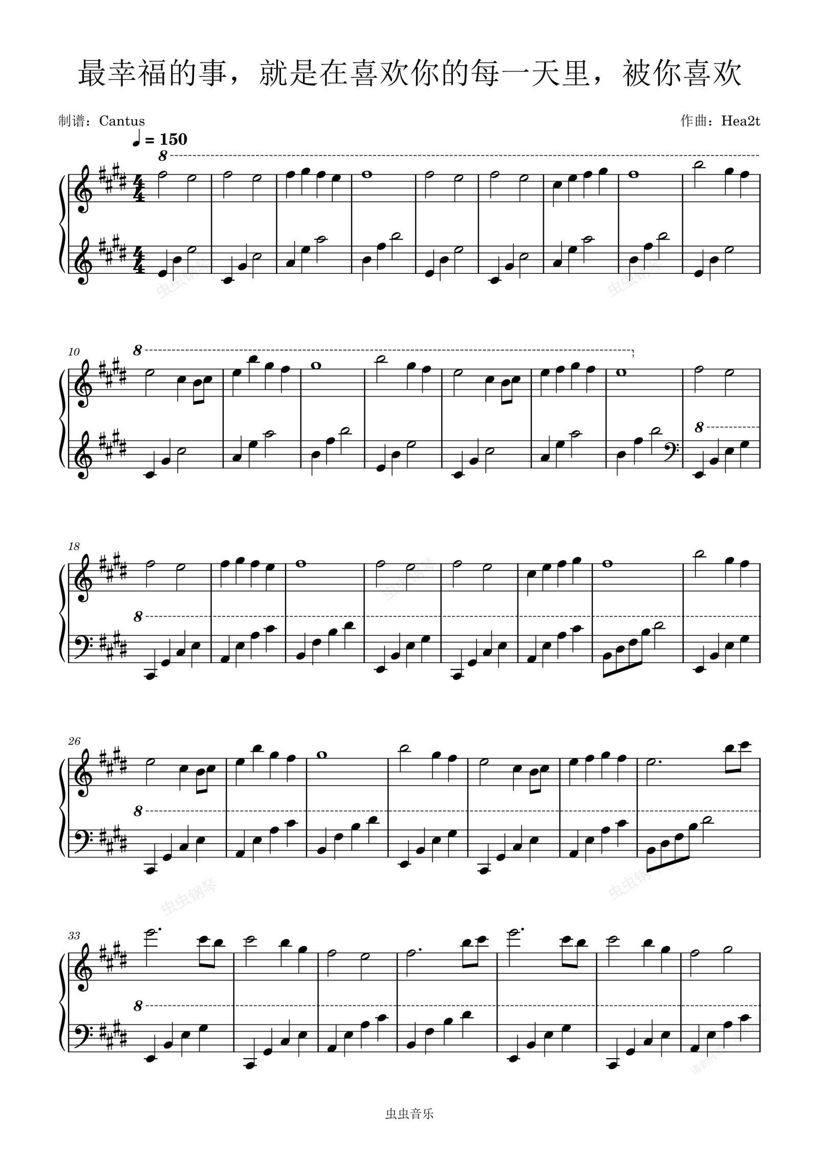 钢琴谱:最幸福的事,就是在喜欢你的每一天里,被你喜欢-Hea2t