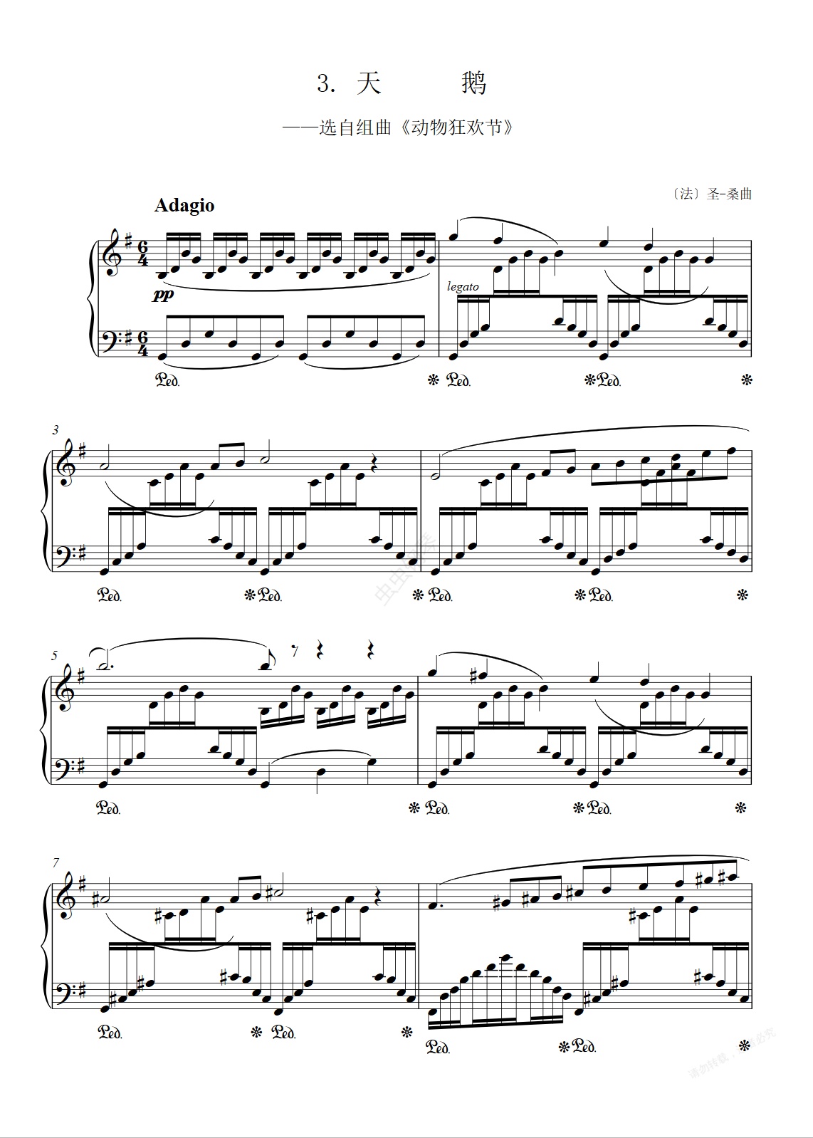 钢琴谱:天鹅——选自组曲《动物狂欢节》