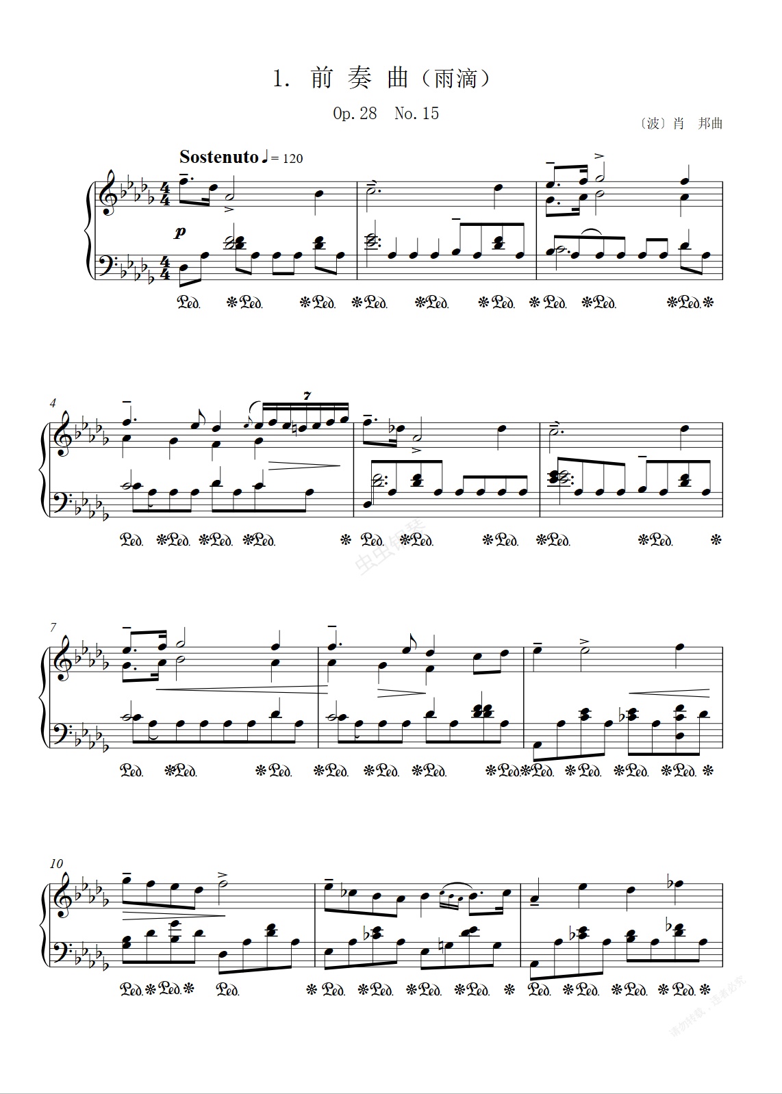 钢琴谱:前奏曲(雨滴) Op.28 No.15