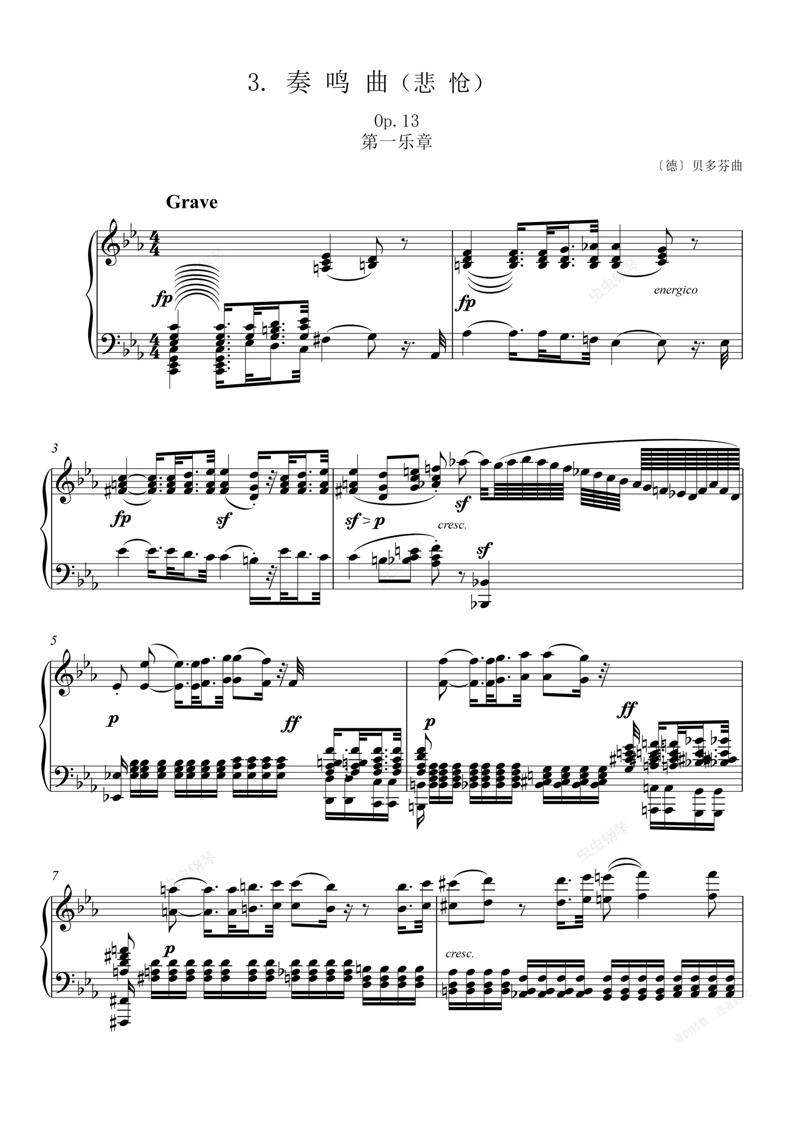 钢琴谱:奏鸣曲(悲怆) Op.13 第一乐章