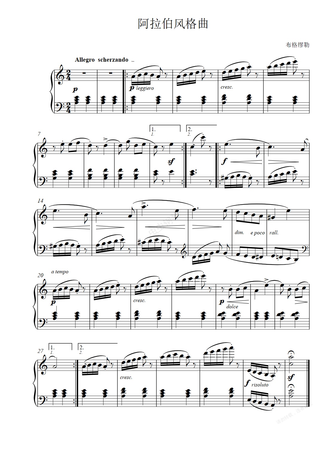 钢琴谱:阿拉伯风格曲(Op.100,No.2)