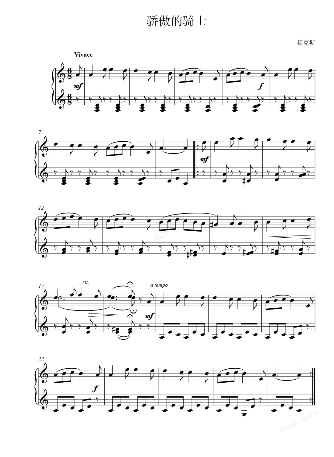 钢琴谱:骄傲的骑士