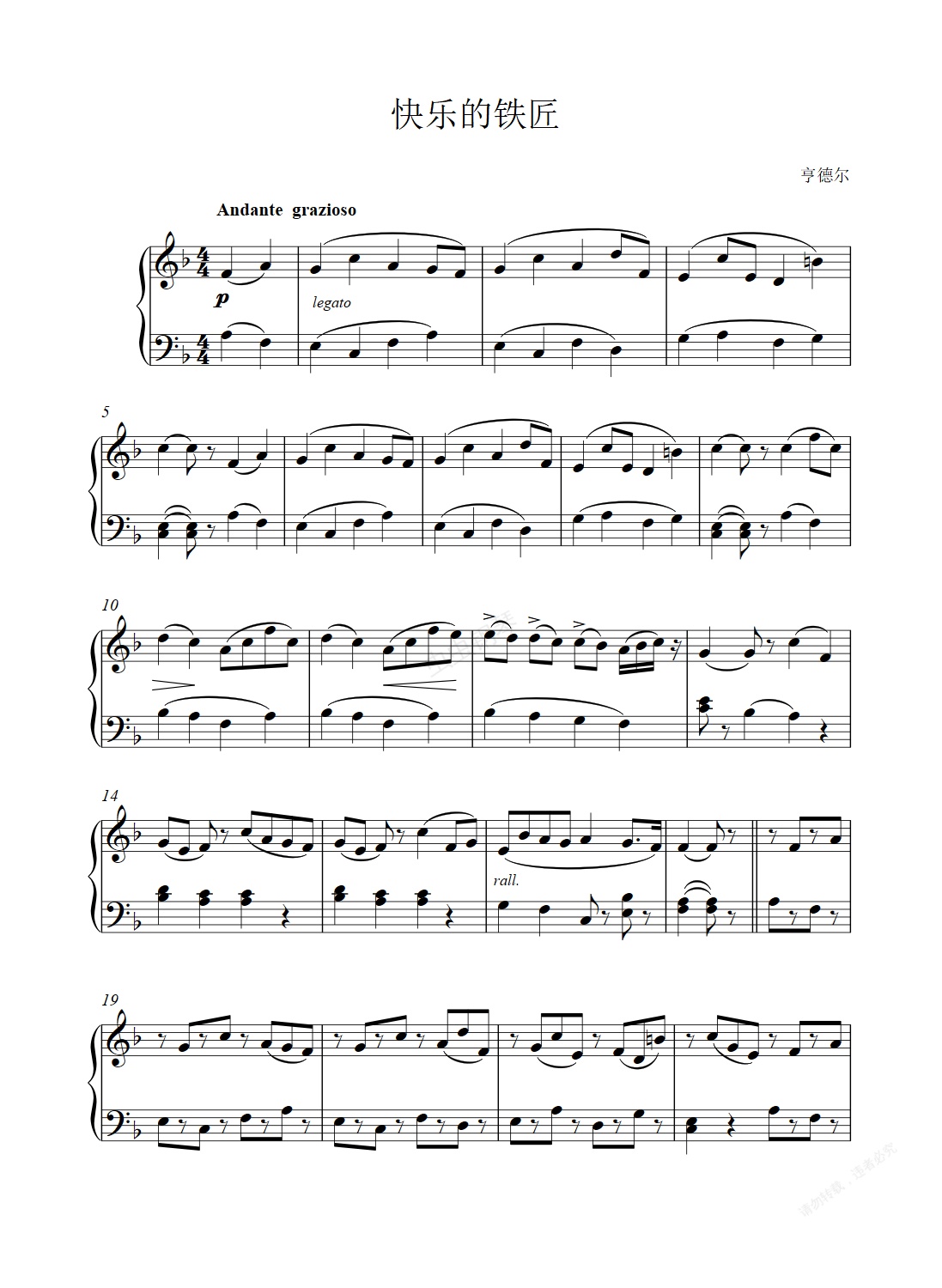 钢琴谱:快乐的铁匠
