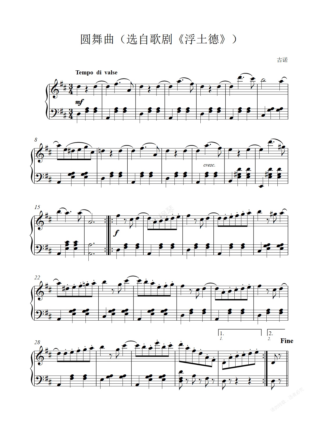 钢琴谱:圆舞曲(选自歌剧《浮土德》)