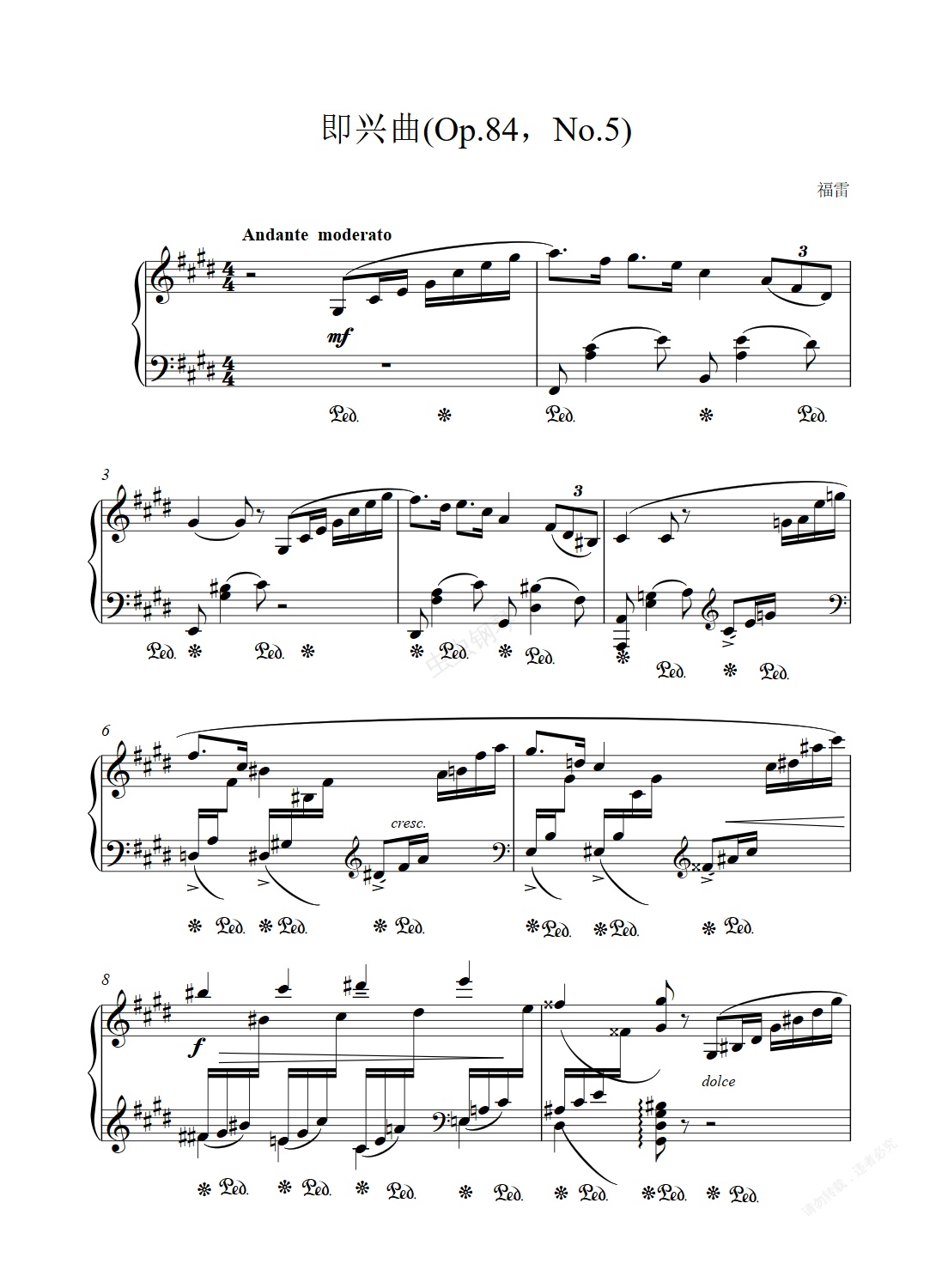 钢琴谱:即兴曲(Op.84,No.5)