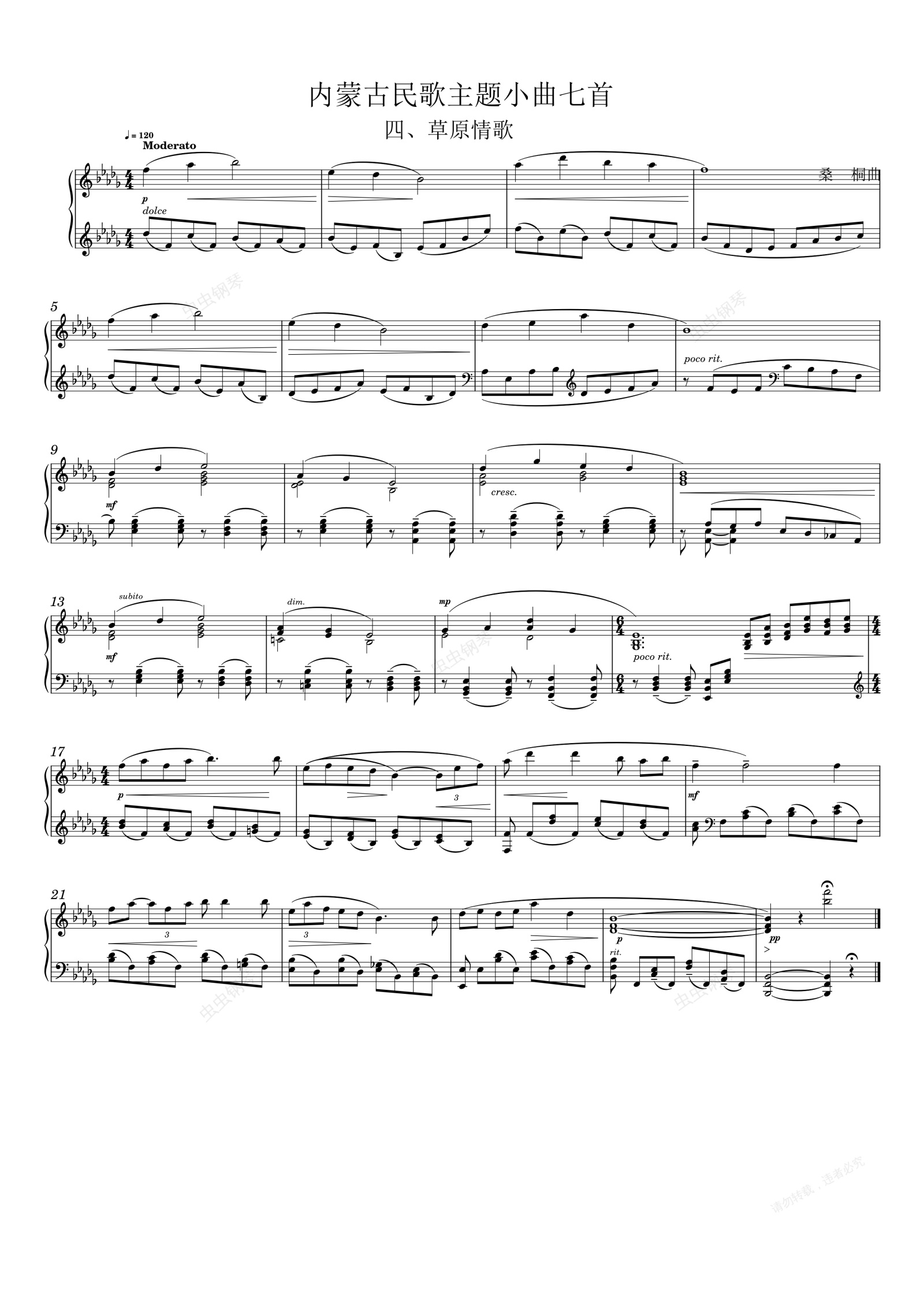 钢琴谱:内蒙古民歌主题小曲七首 四、草原情歌