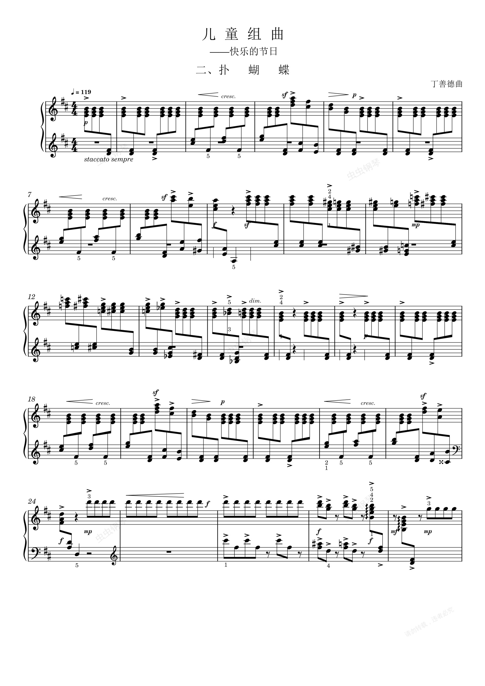 钢琴谱:儿童组曲 二、扑蝴蝶