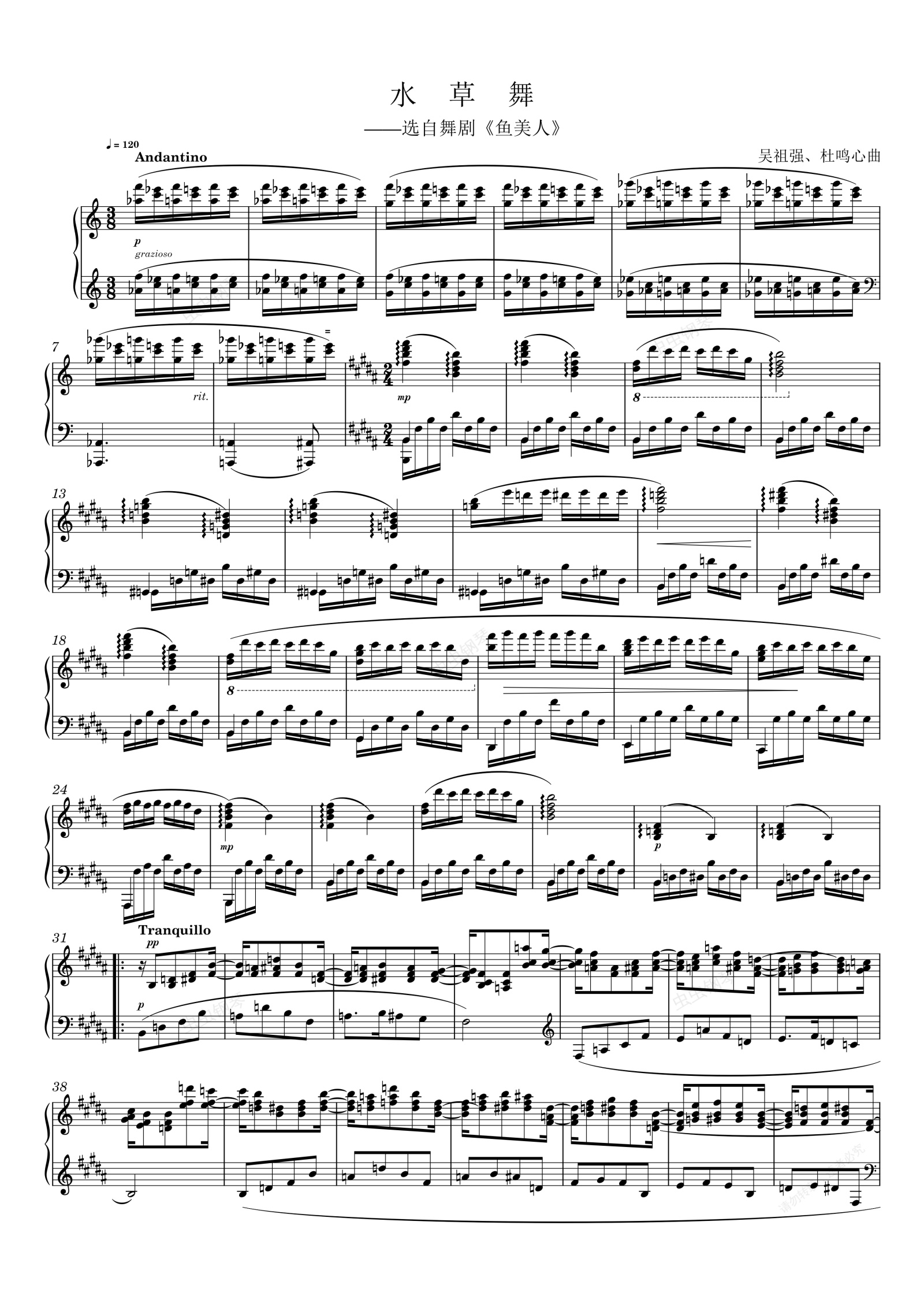 钢琴谱:水草舞一选自舞剧《鱼美人》