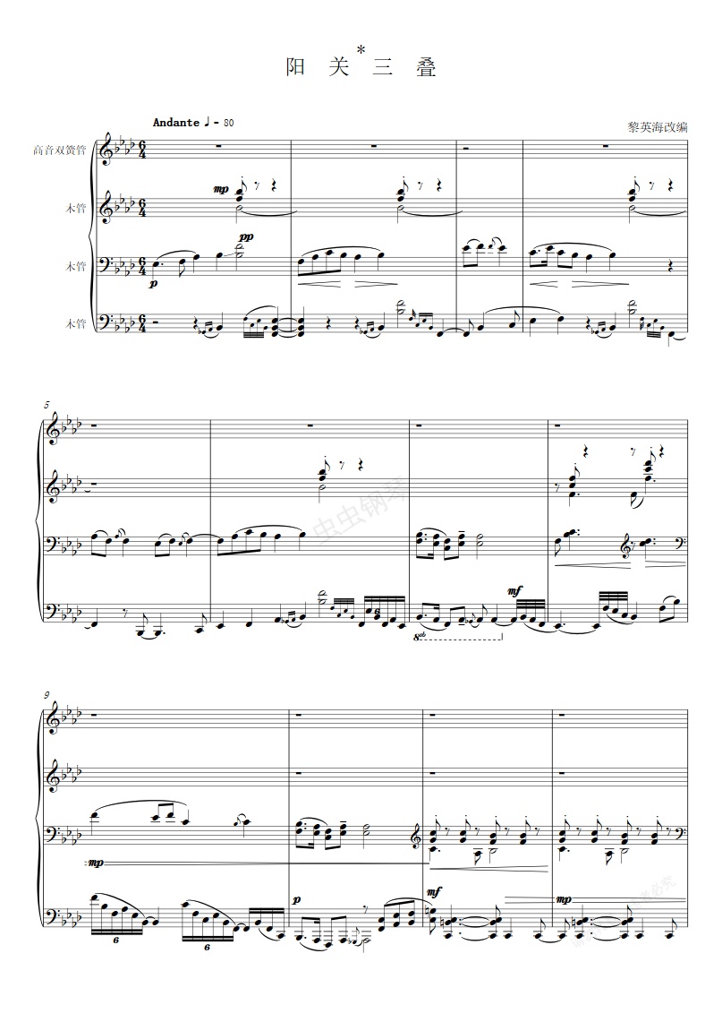 钢琴谱:阳关三叠
