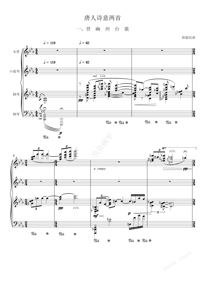 钢琴谱:唐人诗意两首 一、登幽州台歌