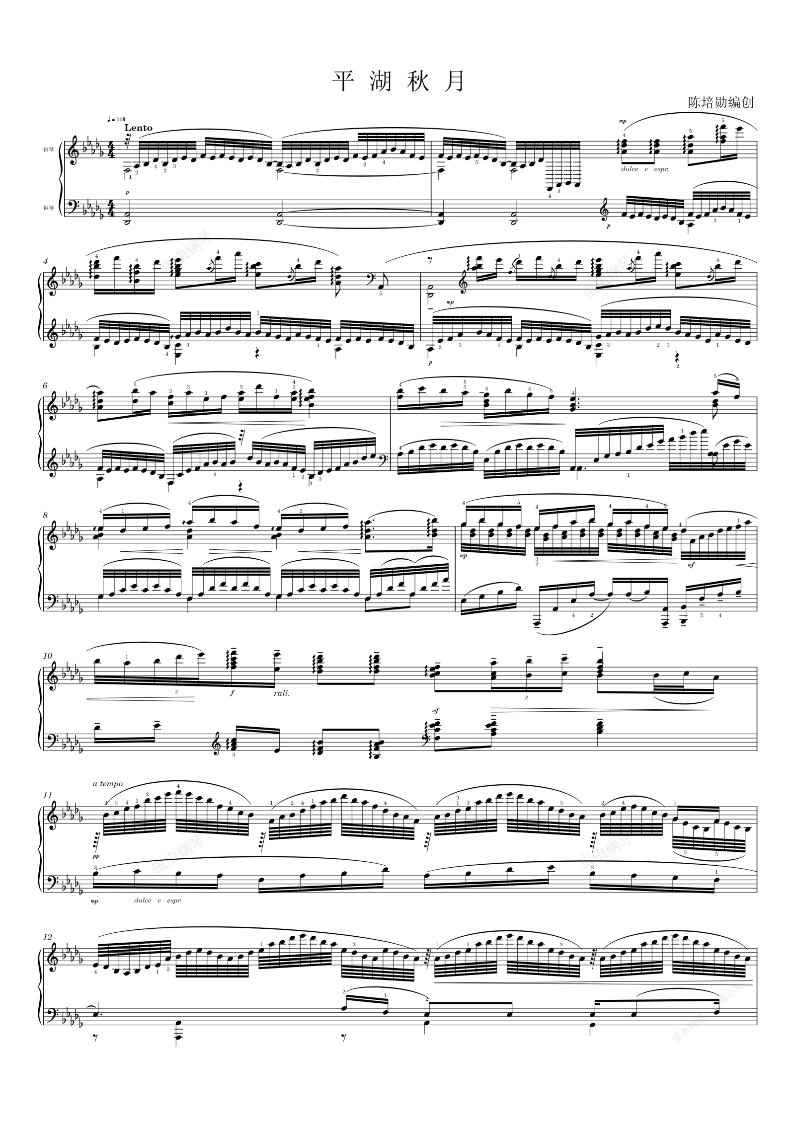 钢琴谱:平湖秋月
