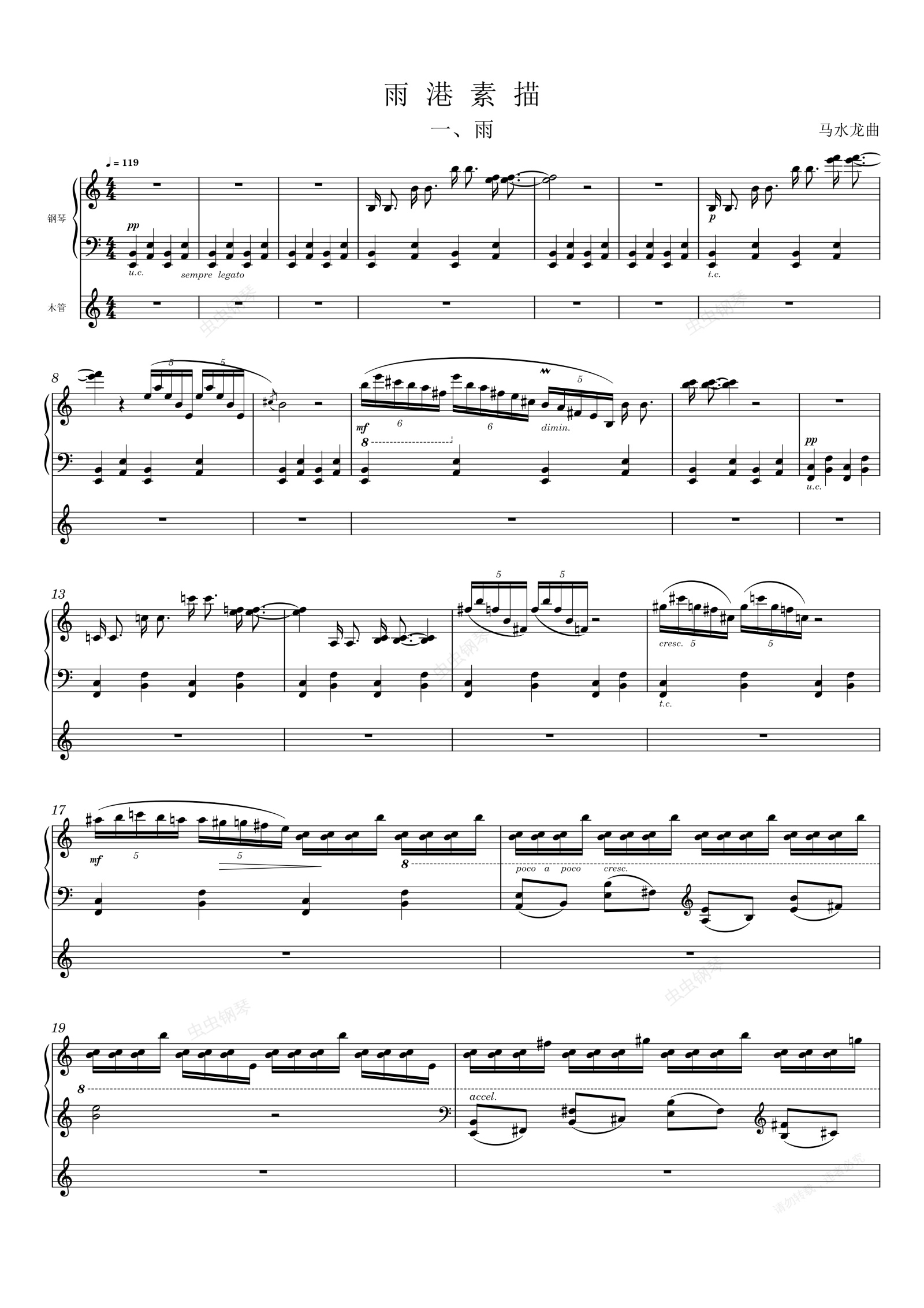 钢琴谱:渔港素描 一、雨