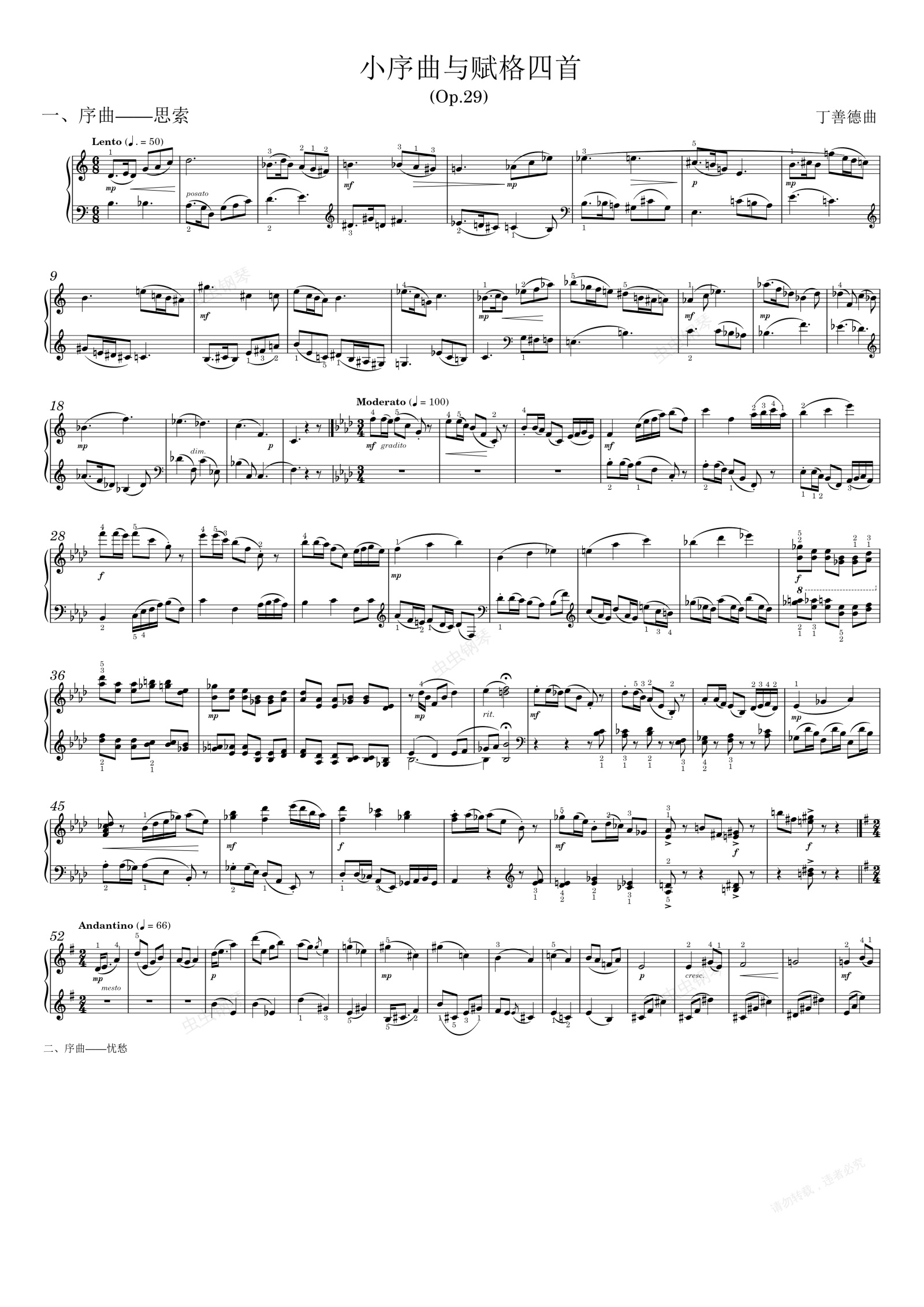 钢琴谱:小序曲与赋格四首