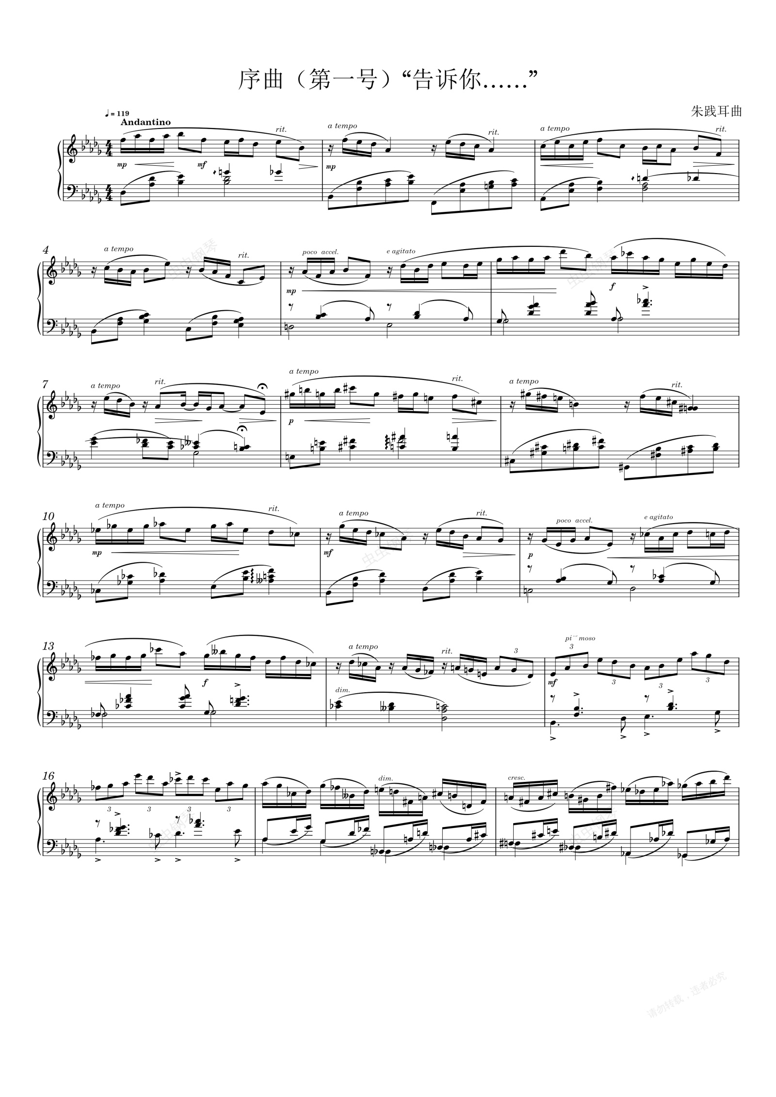 钢琴谱:序曲(第一号)“告诉你…… ”