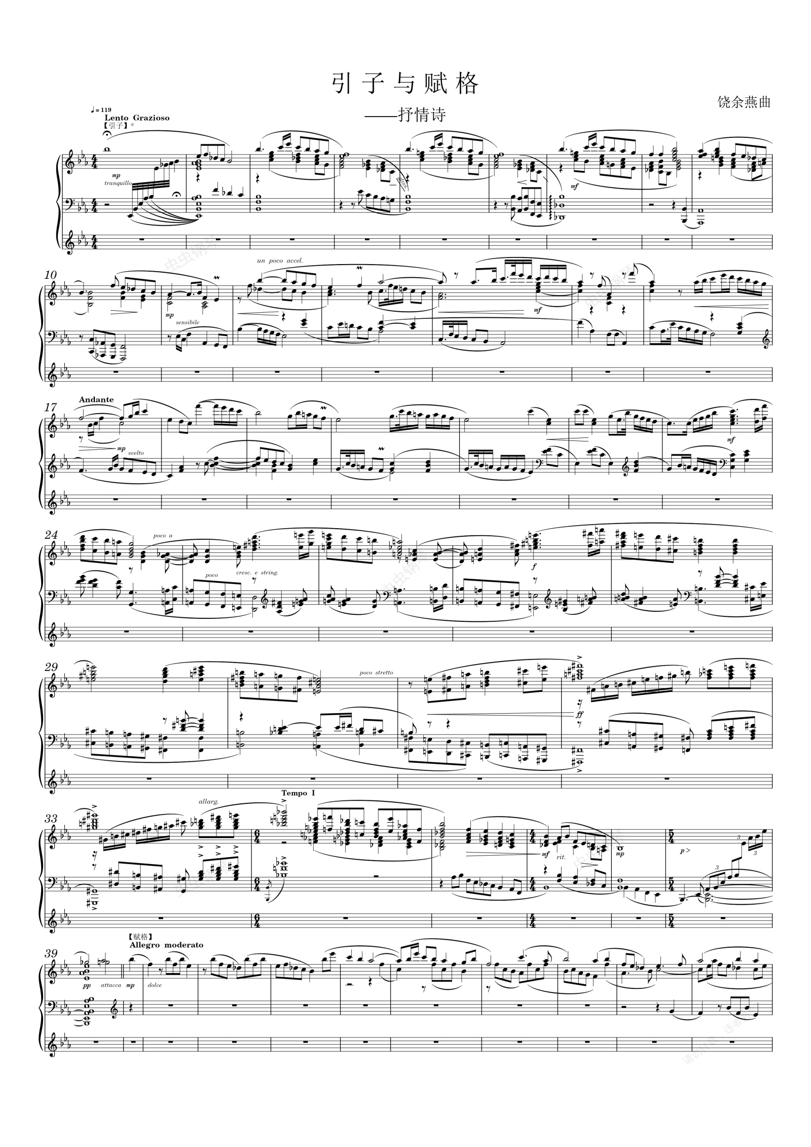 钢琴谱:引子与赋格——抒情诗