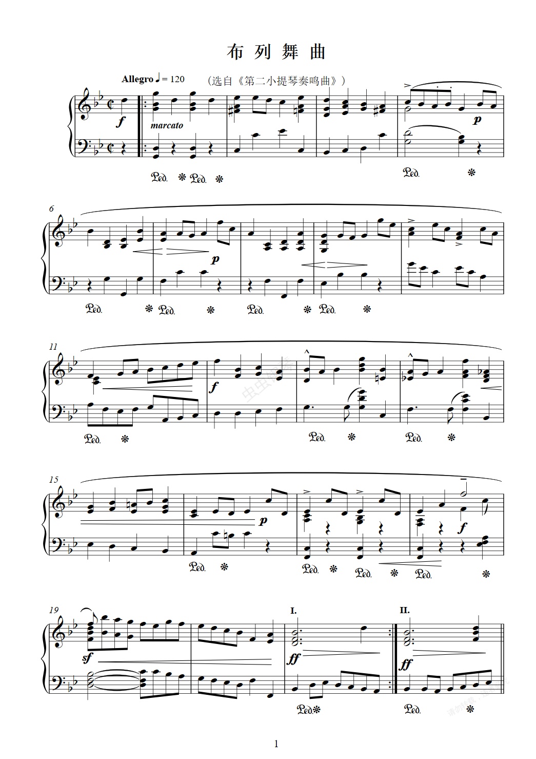 钢琴谱:布列舞曲(约·塞·巴赫)