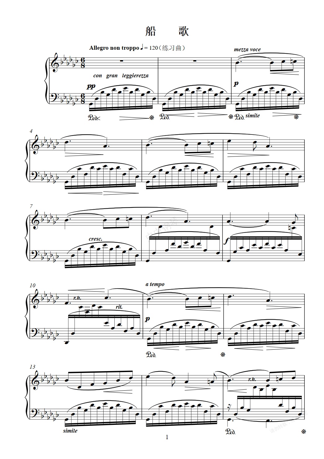钢琴谱:船歌(练习曲)