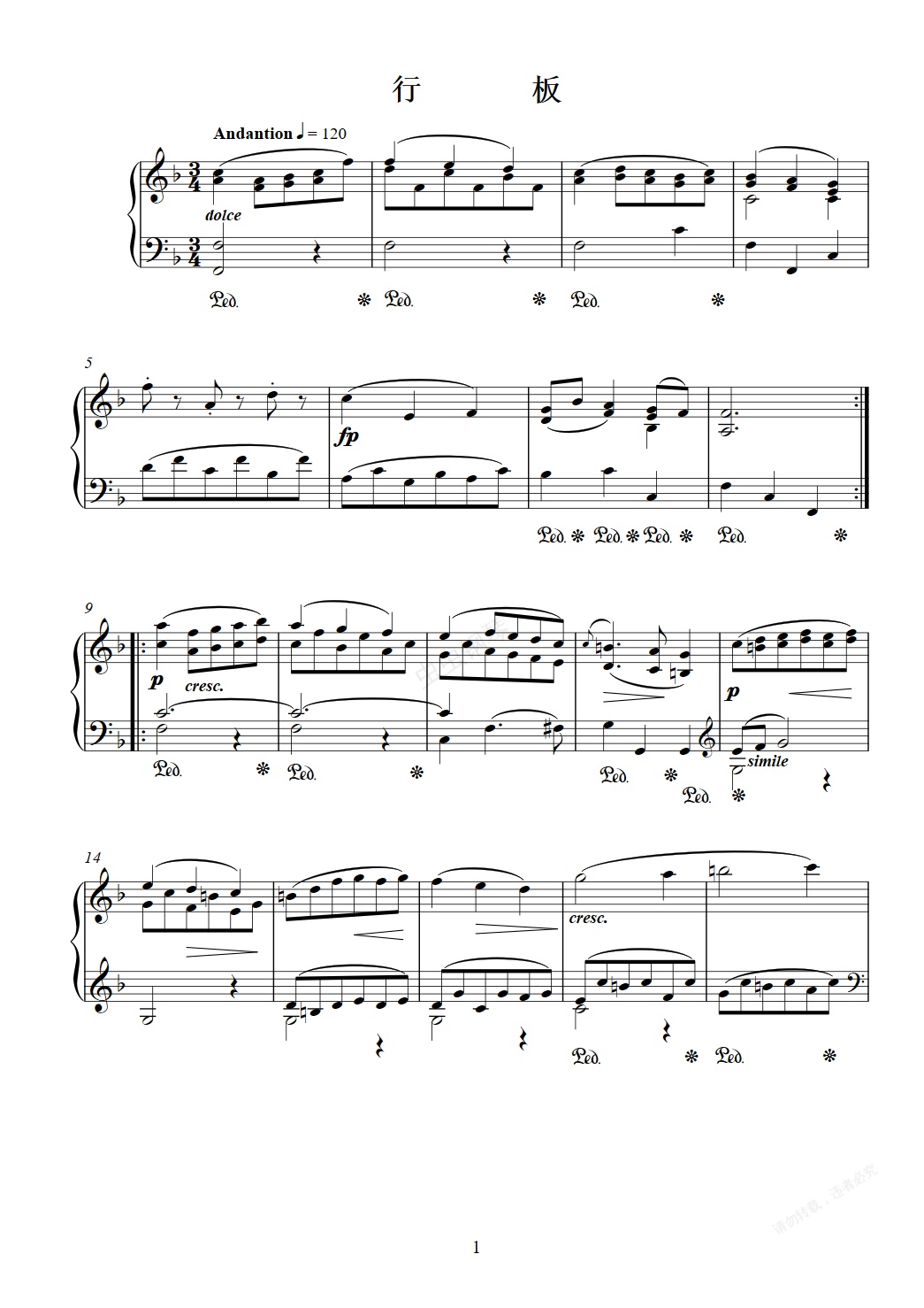 钢琴谱:行板(选自歌剧《奥菲欧》)