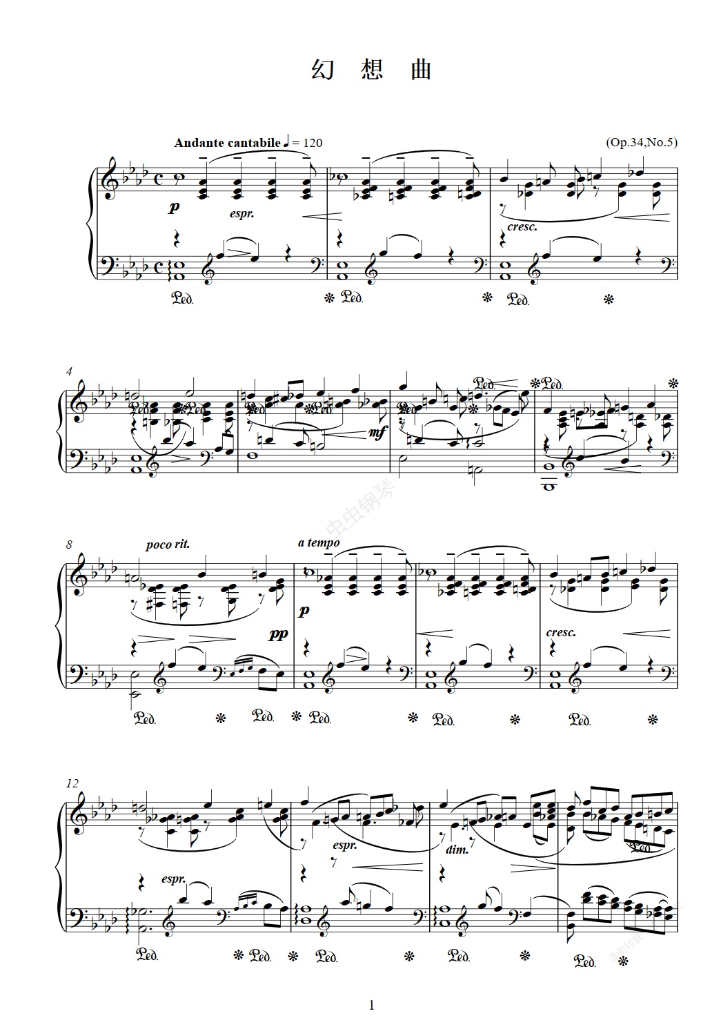 钢琴谱:幻想曲(修特 Op.34,No.5)