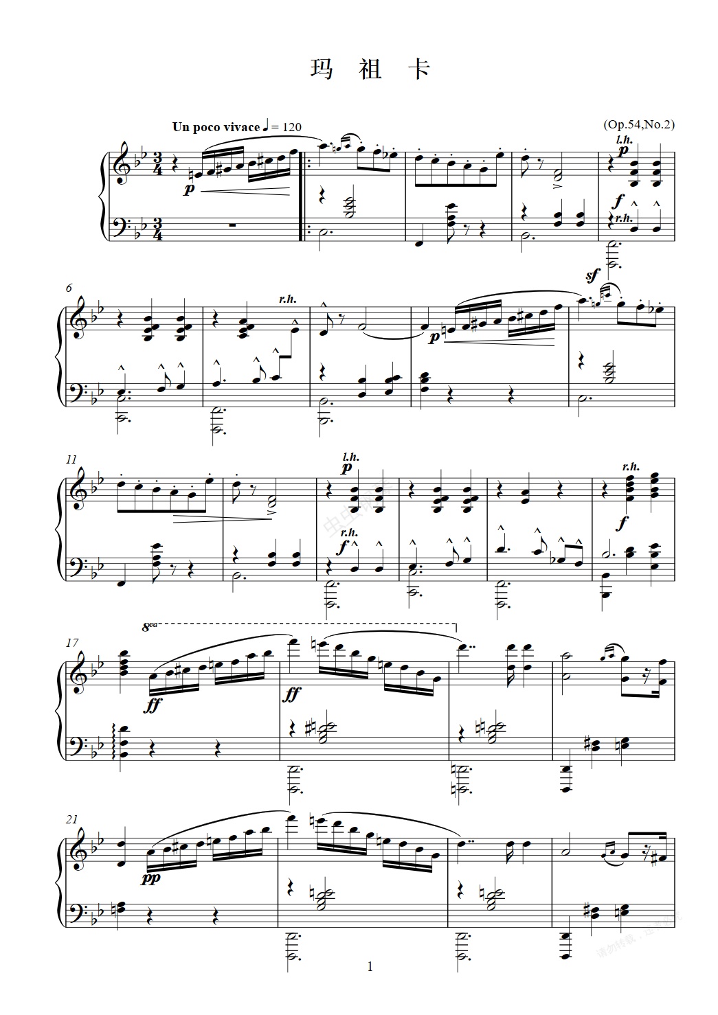钢琴谱:玛祖卡(戈达Op.54,No.2)