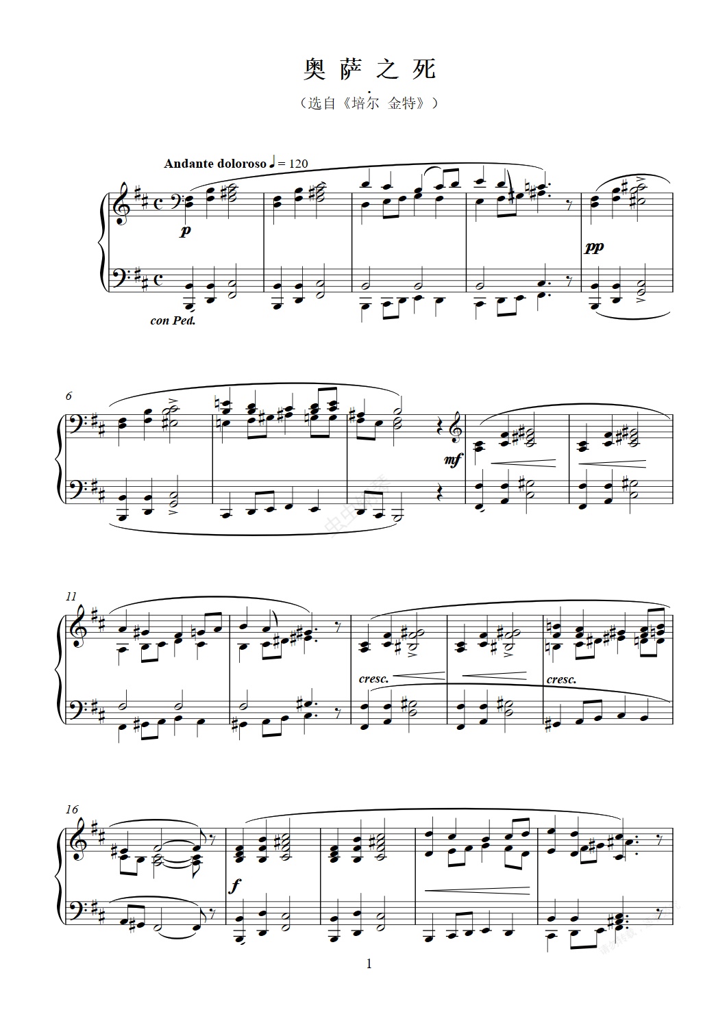钢琴谱:奥萨之死(选自《培尔·金特》)